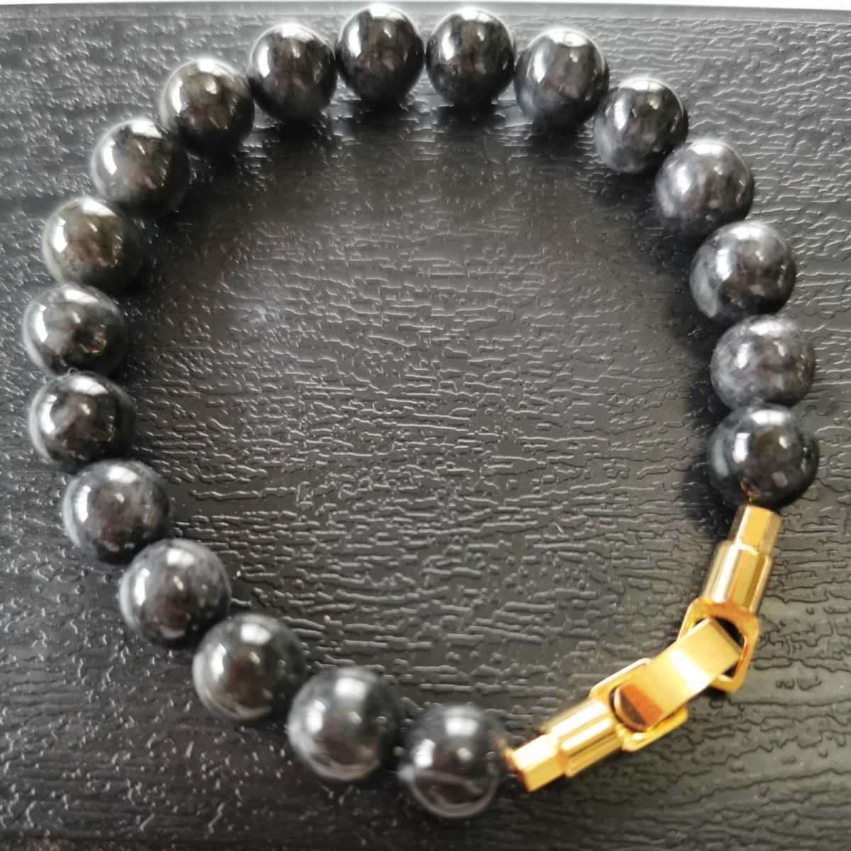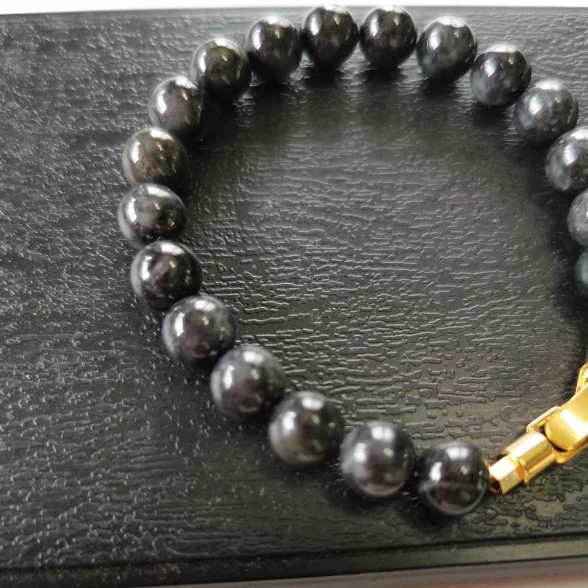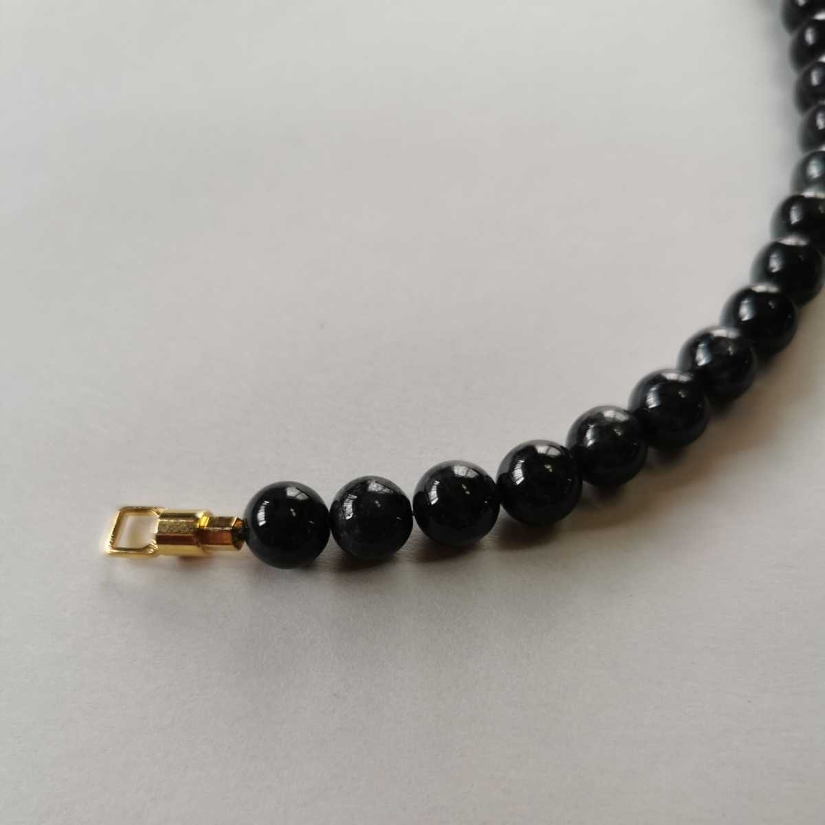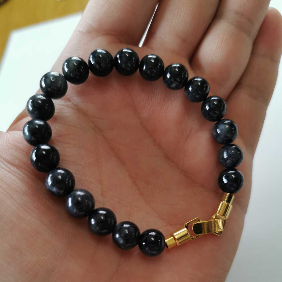 黒翡翠8ミリ15センチブレスレット!留め具中折式留め具!中はナイロンコートワイヤーです!綺麗な黒翡翠です!送料無料宜しくお願いします!