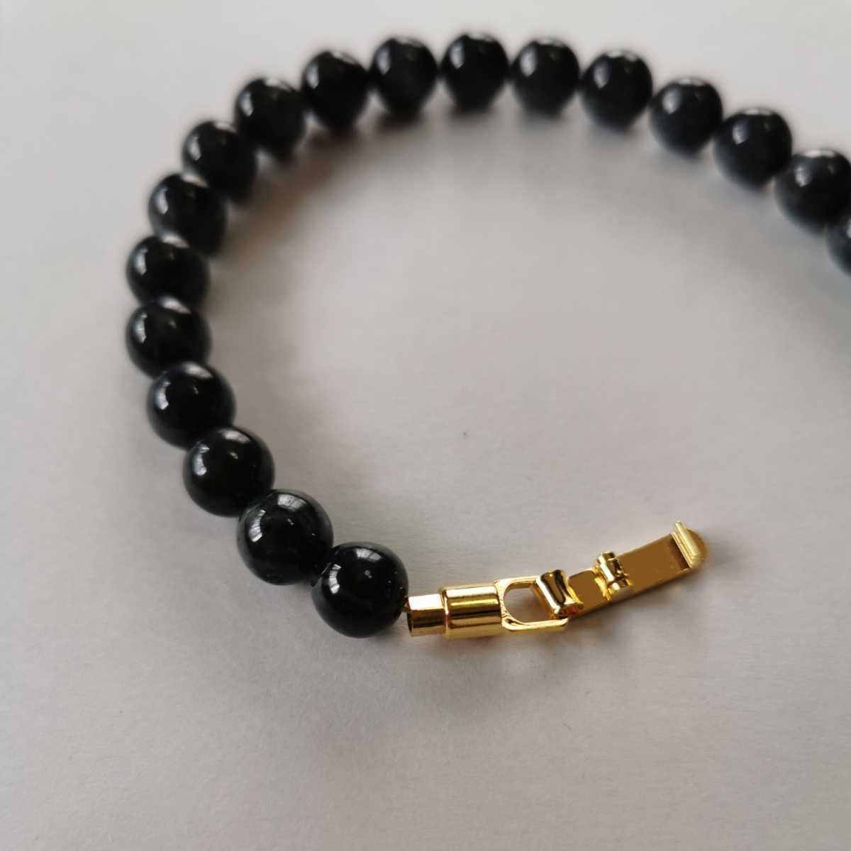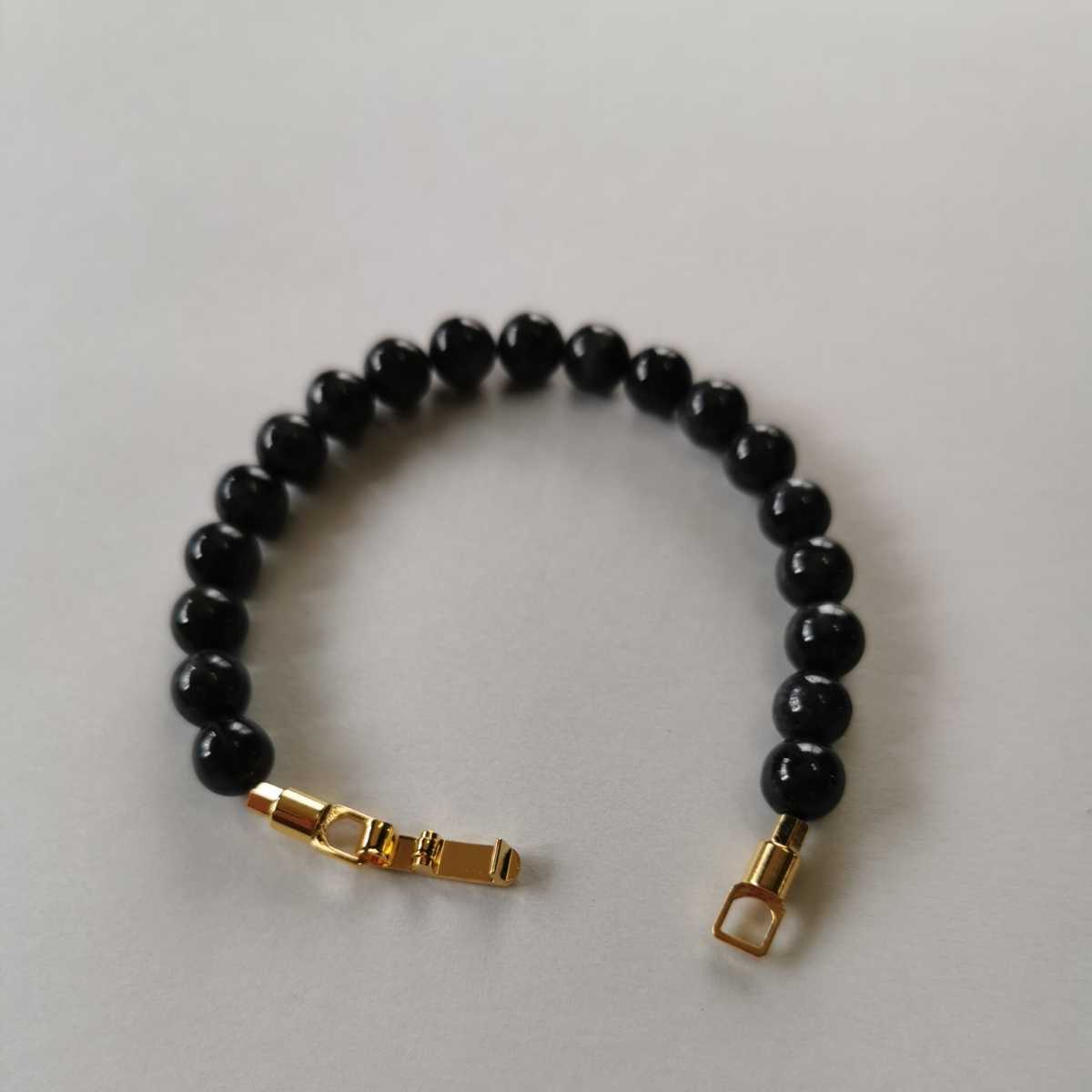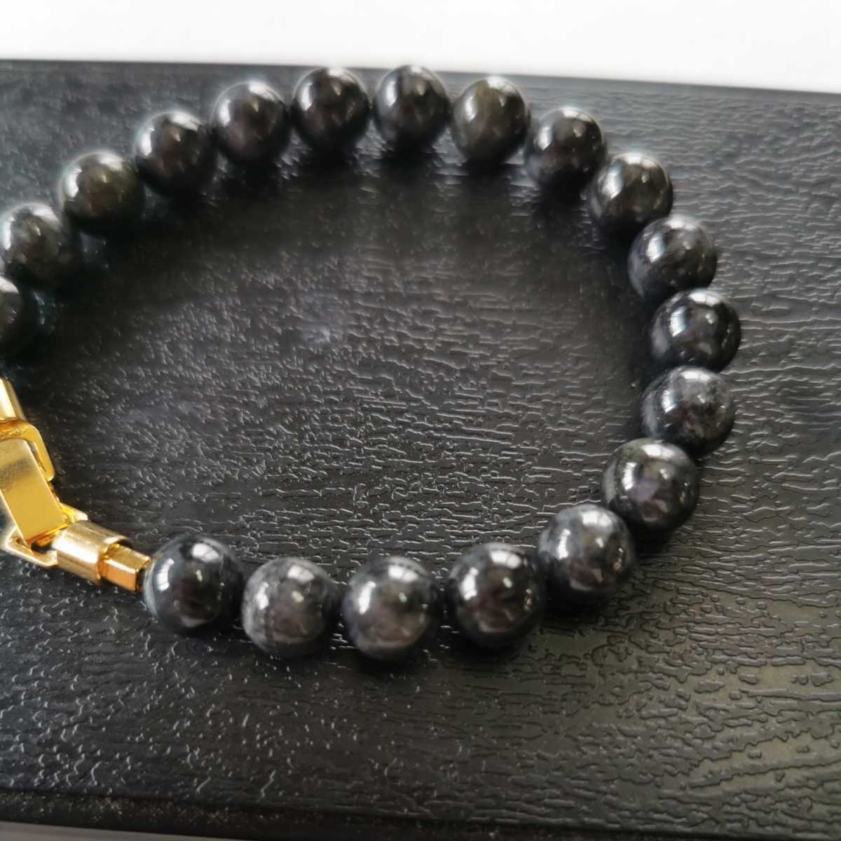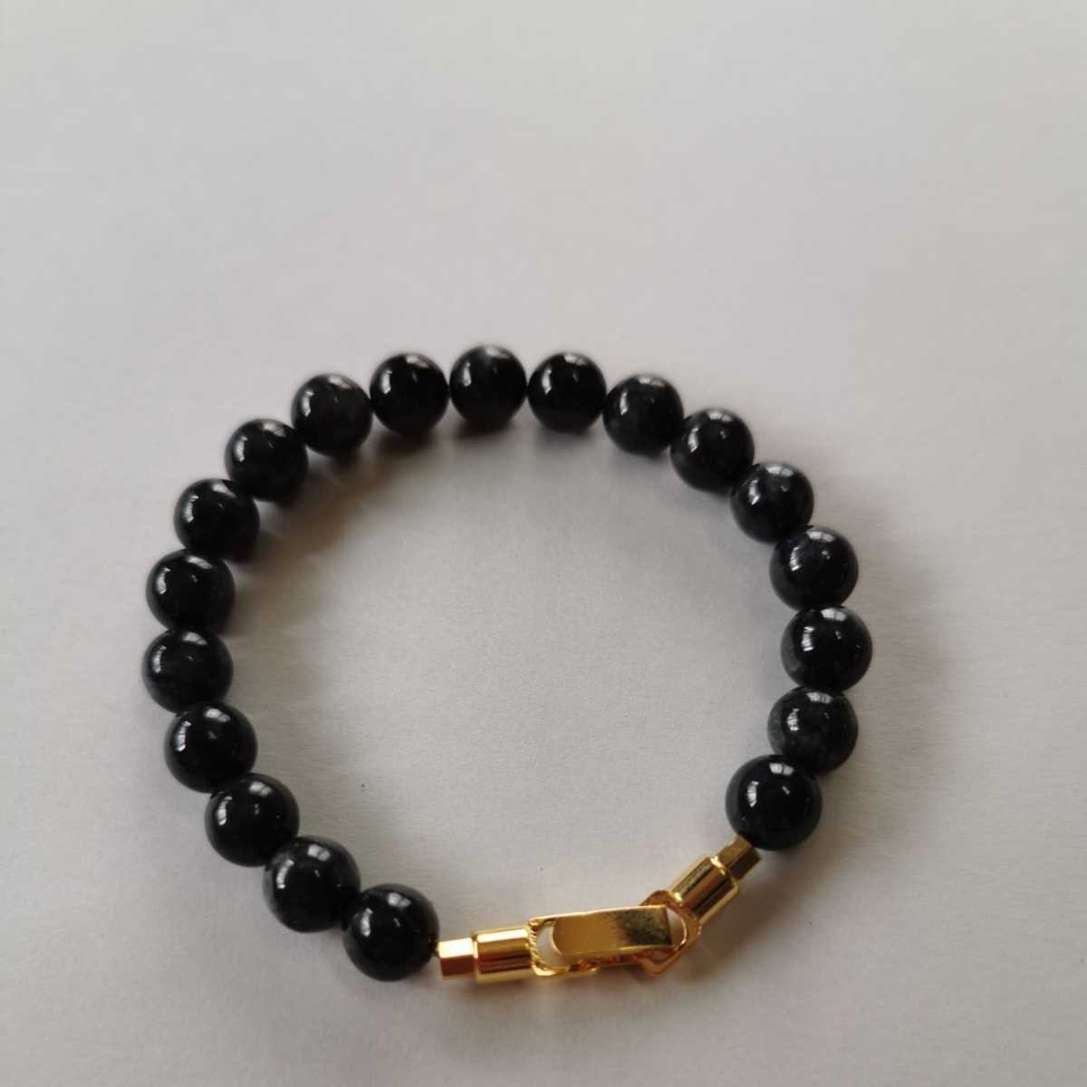 黒翡翠8ミリ15センチブレスレット!留め具中折式留め具!中はナイロンコートワイヤーです!綺麗な黒翡翠です!送料無料宜しくお願いします!