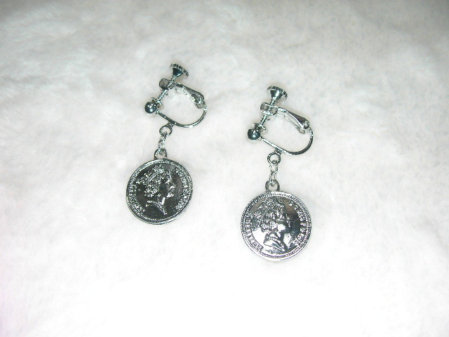 ・素人採寸ではありますが、イヤリングのトップから飾り下までの総丈(全長)約3,1センチほど、コイン直径約1,5センチほどです