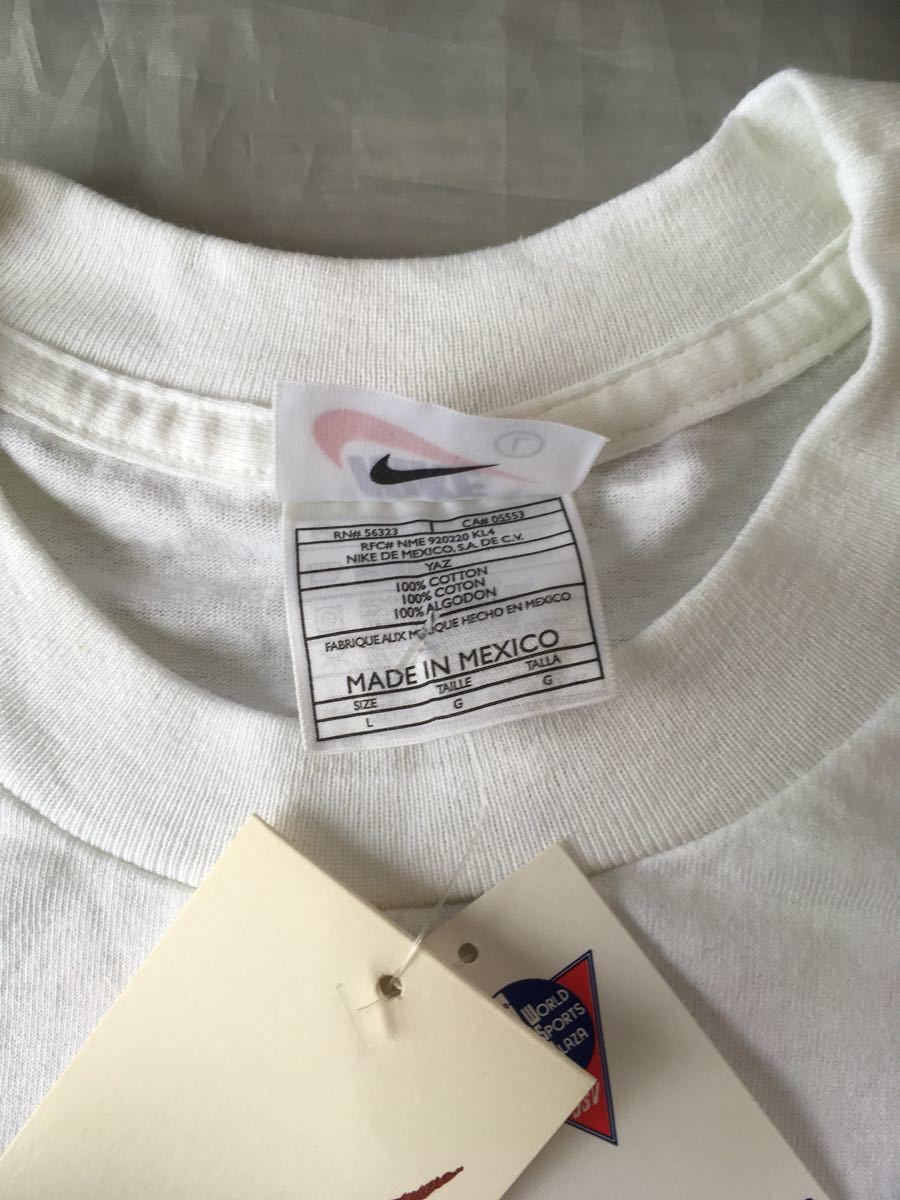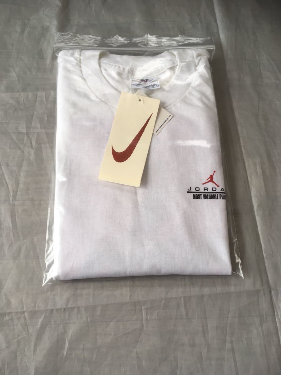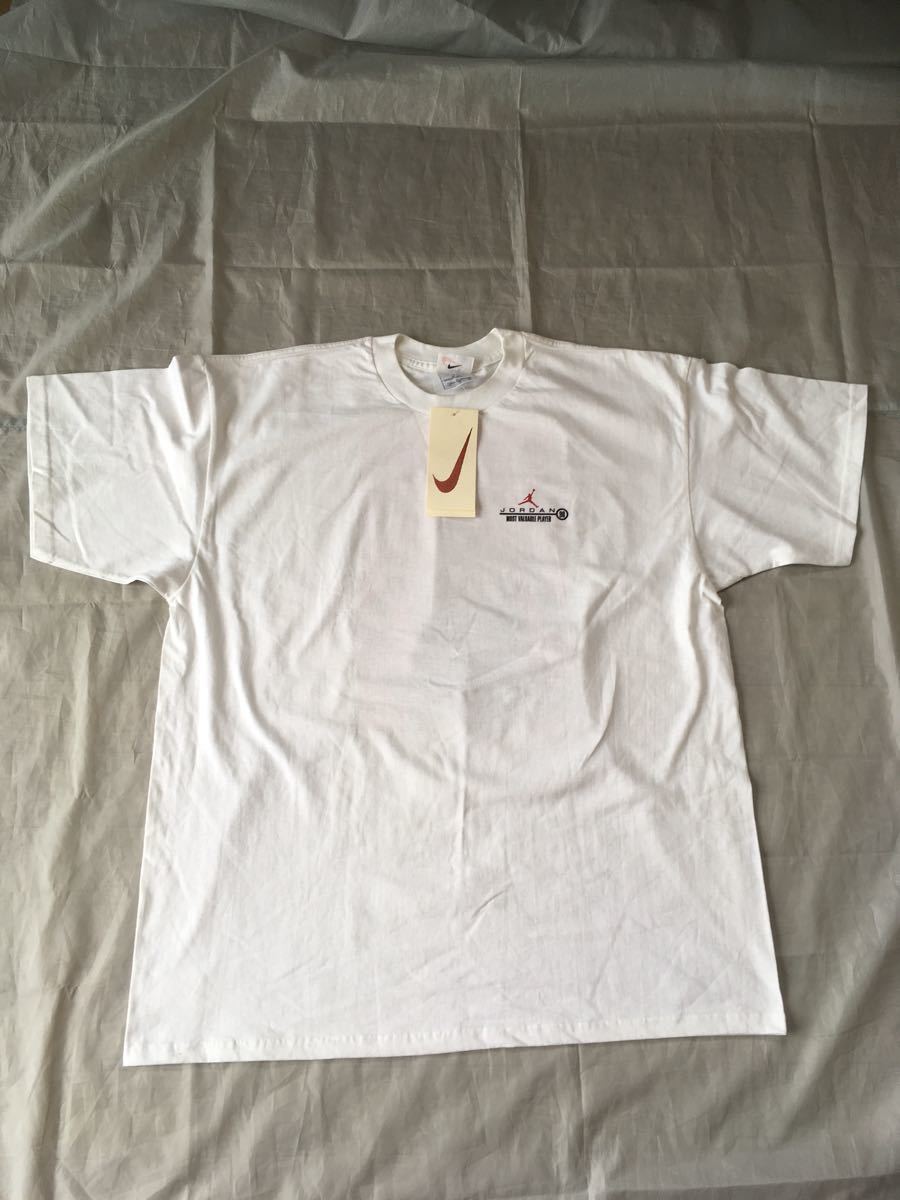 1998年にマイケルジョーダンが2度目の引退した時に作られたナイキのTシャツの未使用品になります。虫食いの穴などはありませんが、20年以上前の商品のため色落ちやヨレはあります。 |