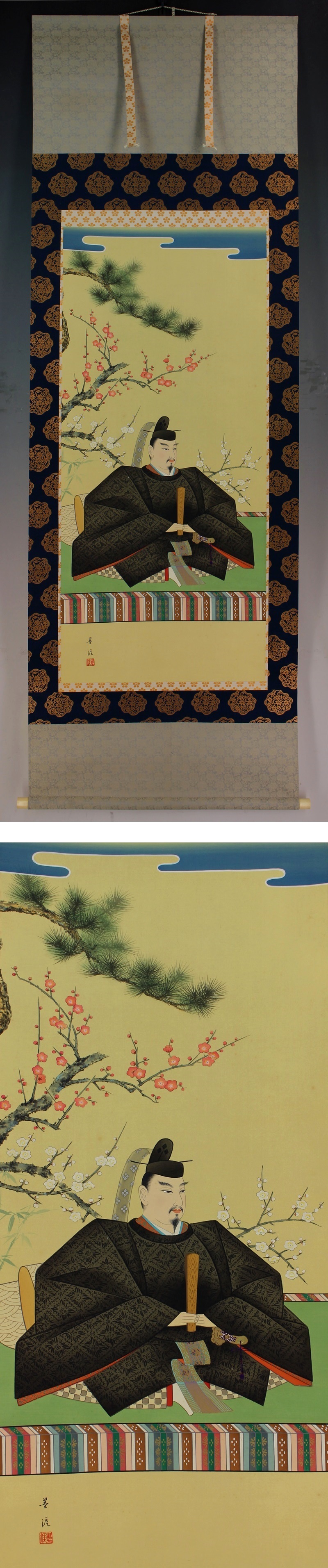 | №2002167 美品【肉筆】墨涯銘【菅原公像】◆絹本◆共箱◆二重箱◆掛軸 | |