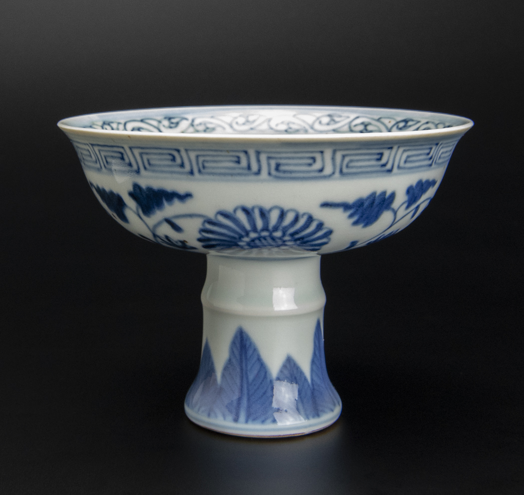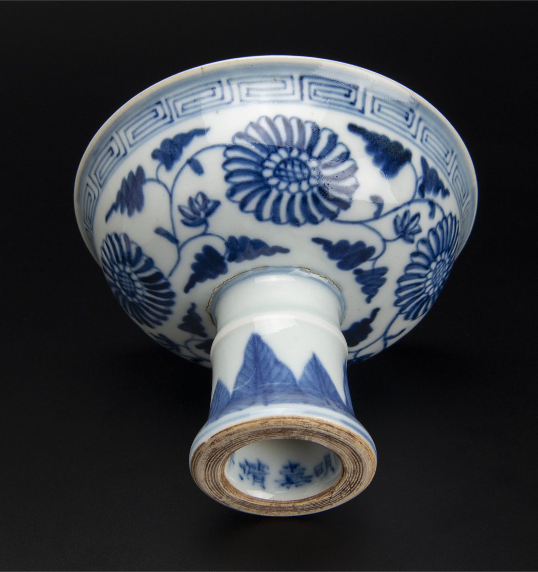 清 青花高足碗 大明嘉靖年制款 共箱 中国 古美術