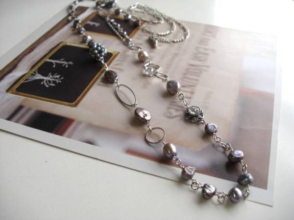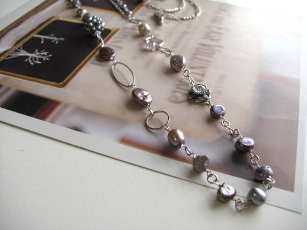 引き算の美学・・シリーズです♪定番のグレーパール・・シックなグレーの淡水パールのネックレスです♪バロックやポテトやオーバルなどデザイン違いの淡水パールにジルコニアやリングやパール玉を合わせてさりげなく華やかな表情です♪カジュアルからフォーマルまで楽しんでいただけます♪7ミリから14ミリ位までの淡水パールにジルコニアチャームやリングや15ミリのパール玉を合わせました♪長さは全長115センチ位で調節自由です♪2連にされても素敵です♪お揃いのブレスレットやイヤリングも出品しています♪シンプルで飽きのこないいつまでも着けられるデザインを考えて作りました!ハンドメイドをご理解頂いてノークレーム、ノーリターンでお願いします