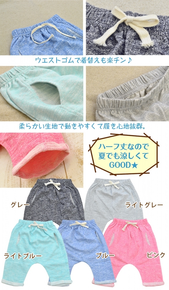 ウエストゴム(紐も付いてます)なので、活発に動きまわるお子様でも脱ぎ履きラクラク♪