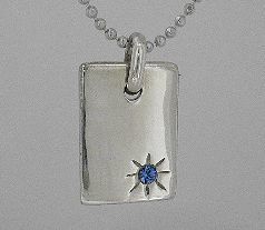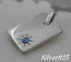 シルバー925銀の鏡面プレートminiペンダント ブルージルコニア付/シルバーアクセALL50%OFF