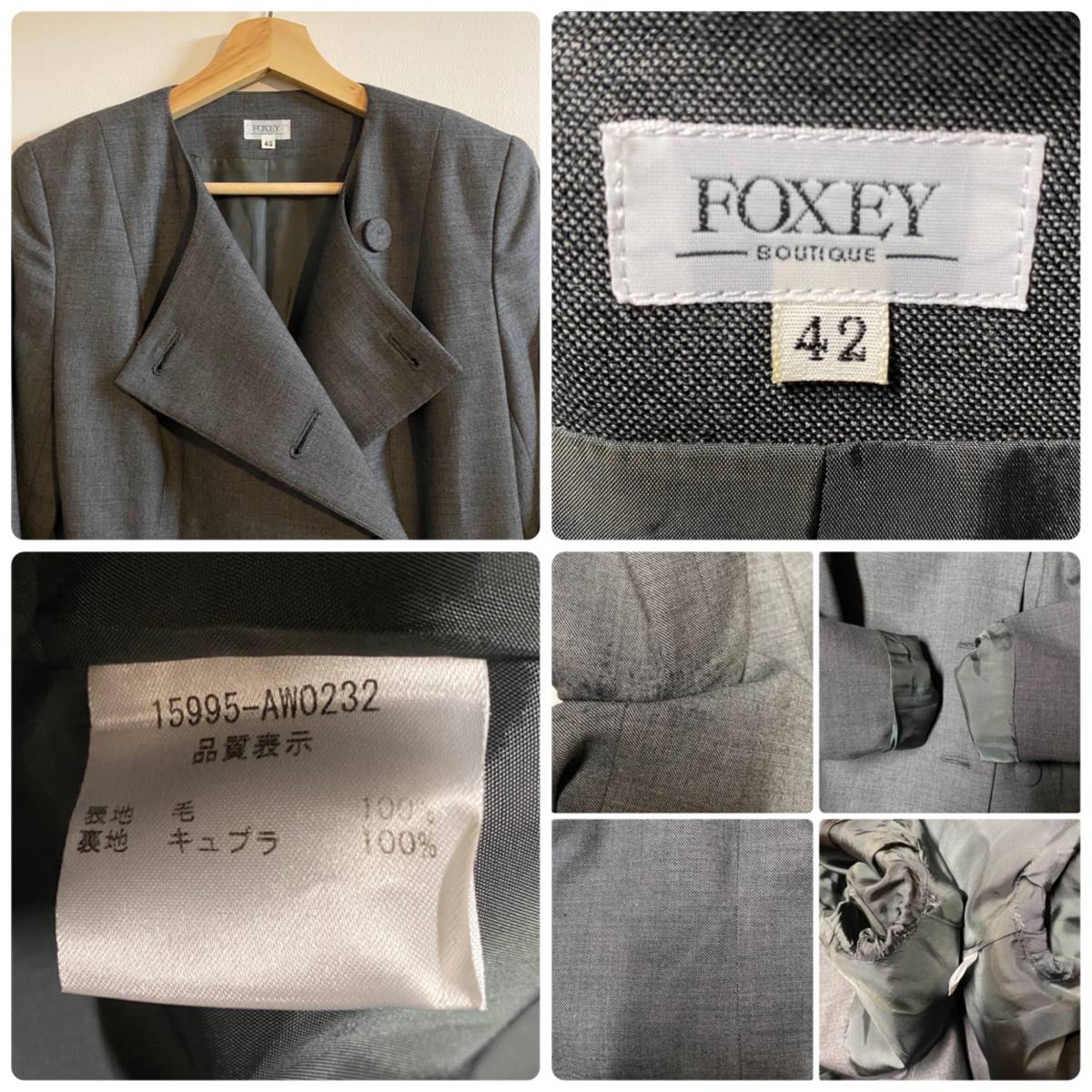 カラーはグレー系、素材は表/100%、裏/キュプラ100%になります。