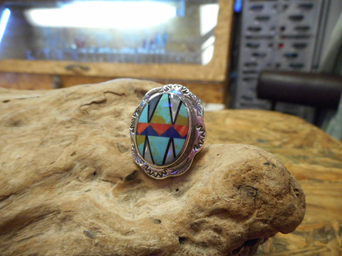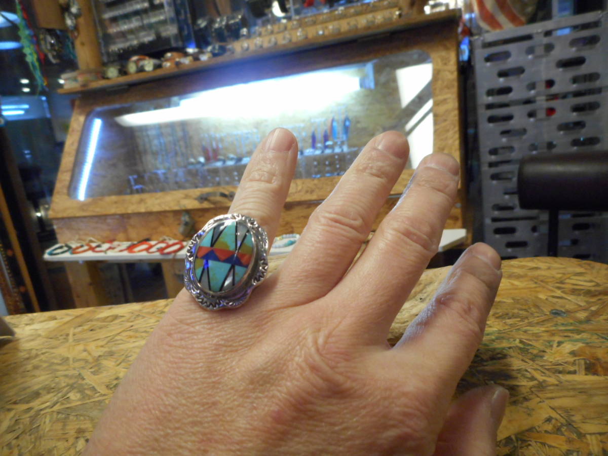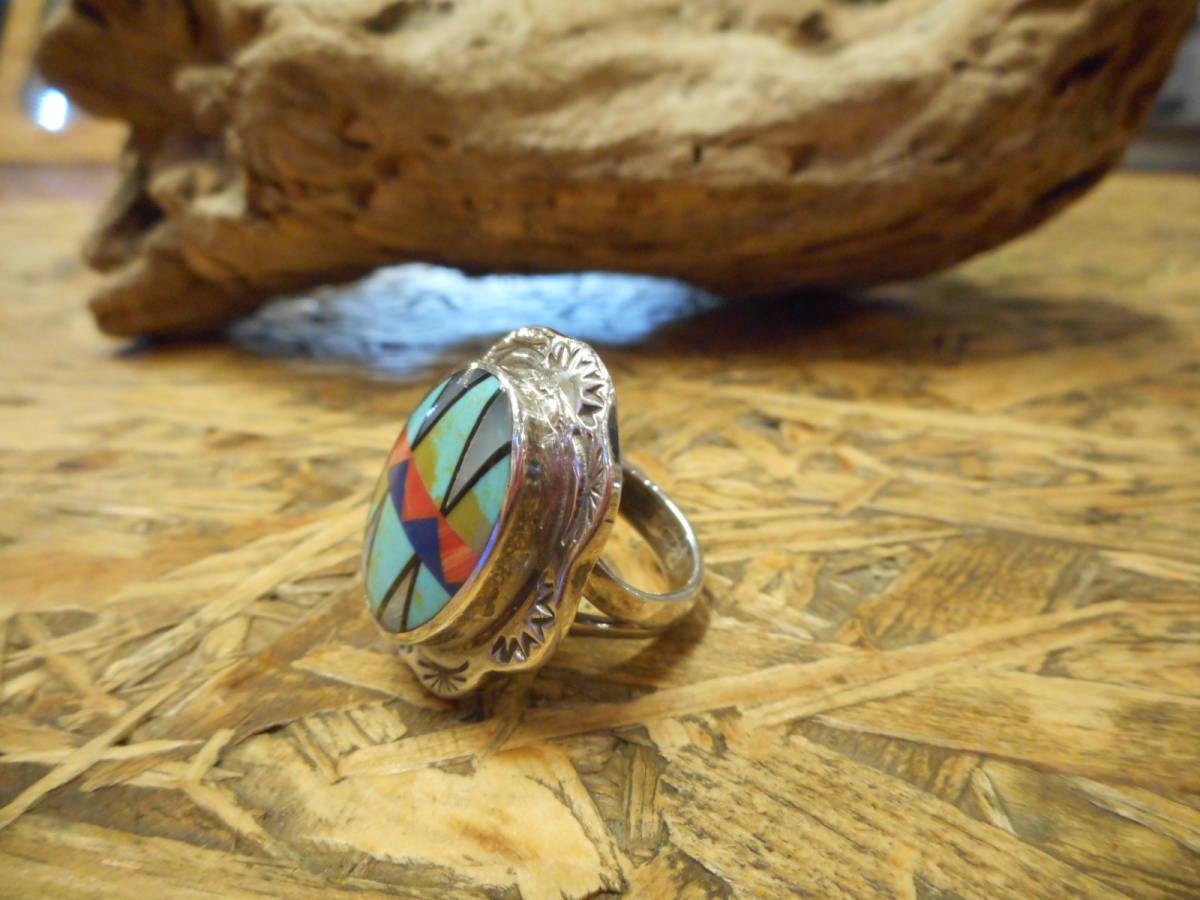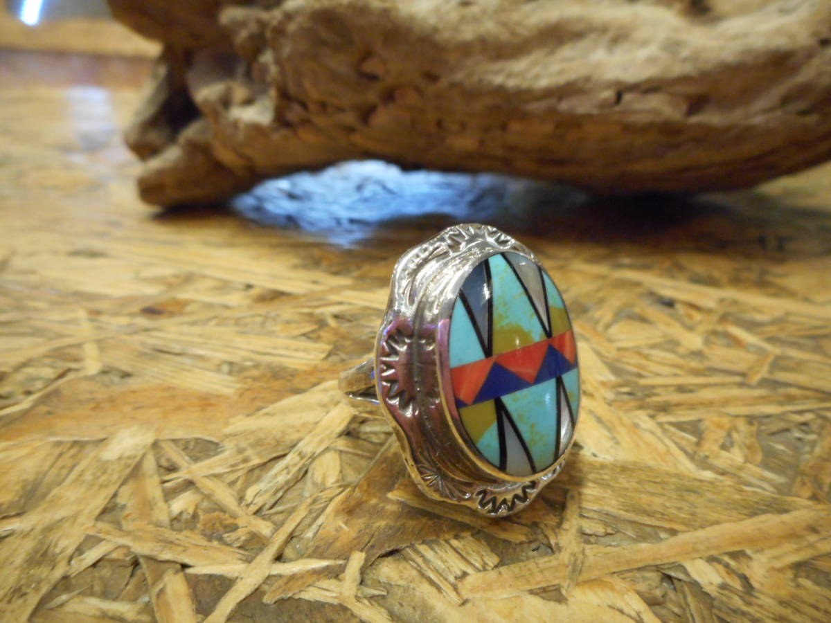 シルバー925.インレイ.インレイリング.リング.指輪.9号.インディアン.ネイティブ.アメリカン.ズニ.ズニ族.民族.サーフ.好きに.個性的存在感