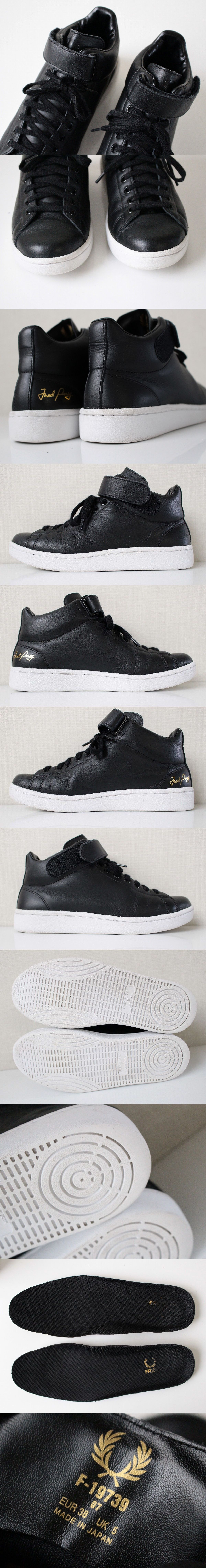 【 FRED PERRY フレッドペリー 】ミドルカット レザー スニーカー 23.5~24cm F-19739 定価\19,800(税込) 革靴 ベルクロ EUR38 UK5 黒