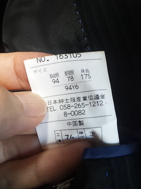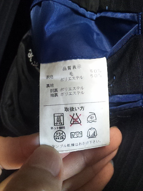 着丈73cm、身幅49cm、袖60cm、肩幅42cm(2ボタン、背抜き、センターベント)