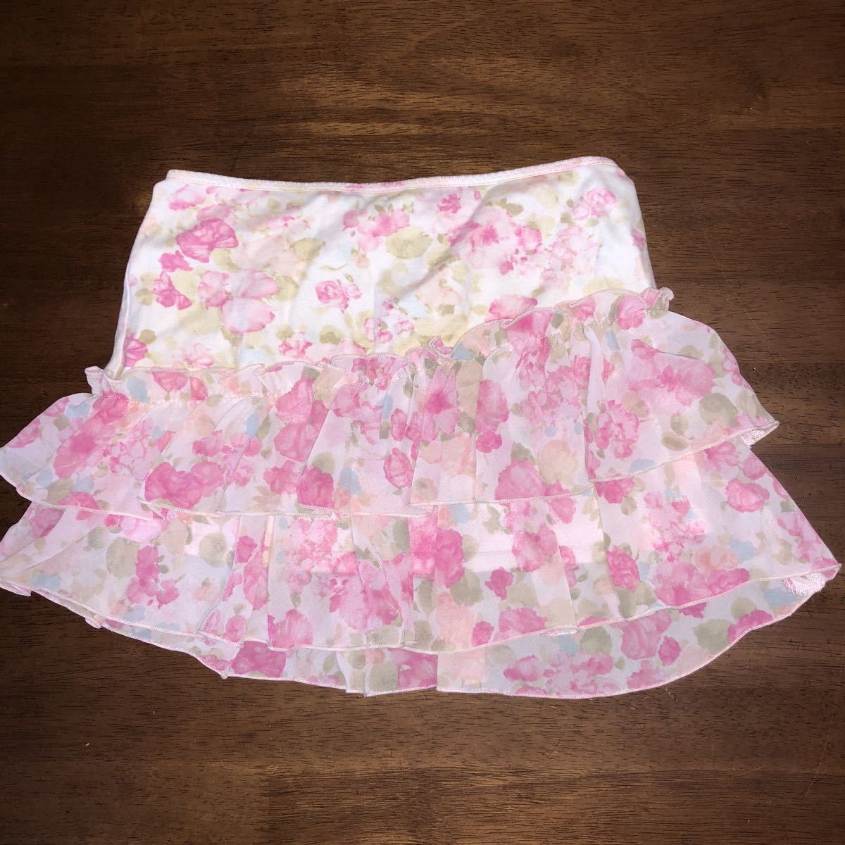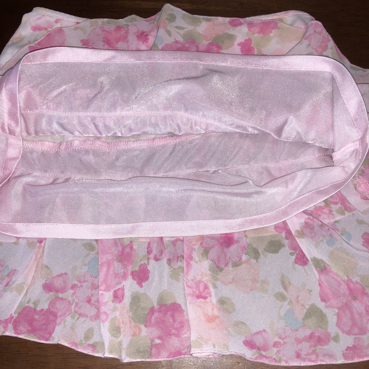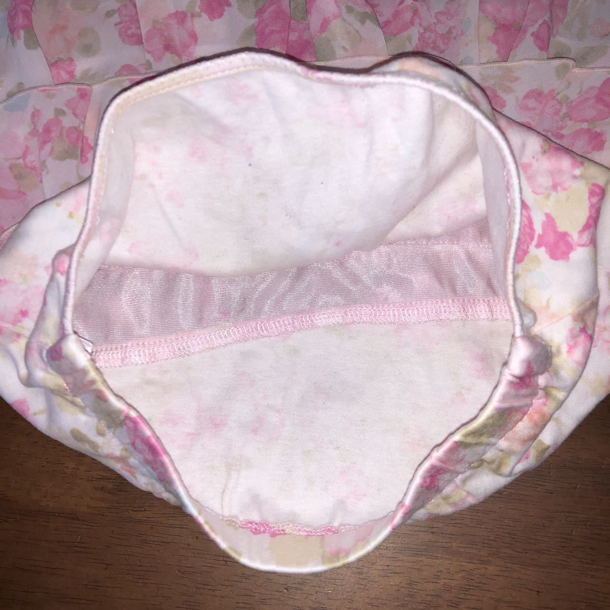 ピンクの花柄と、シフォンのような柔らかい素材が可愛らしいです。