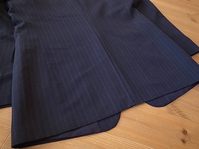 ◆ブランド… 「HAGGAR」 アメリカ古着 ●サイズ表記 44L 日本サイズの XL相当 肩幅…47cm(肩先から肩先の間の長さ) 身幅…58cm(両脇を横直線に結んだ長さ) 着丈…82cm(後衿ぐり中央から後身頃裾) 袖丈…66cm(袖付けの肩先から袖先) ※平置き状態での素人採寸ですので、多少の誤差はご了承ください。 ●素材表記…なし ウールとポリエステルの混紡だと思います。オールシーズン対応 ●色…濃紺 ストライプ柄 ●裏地… 総裏仕立て ●ベント… センターベント ●ポケット…フラップポケット ●製造国表記… USA ●状態…使用感はほとんど感じられない美品です。 ★送料 全国一律 700円 佐川急便 (北海道900円 沖縄その他離島1500円) ※複数ご購入の場合、同梱発送可能です。 |