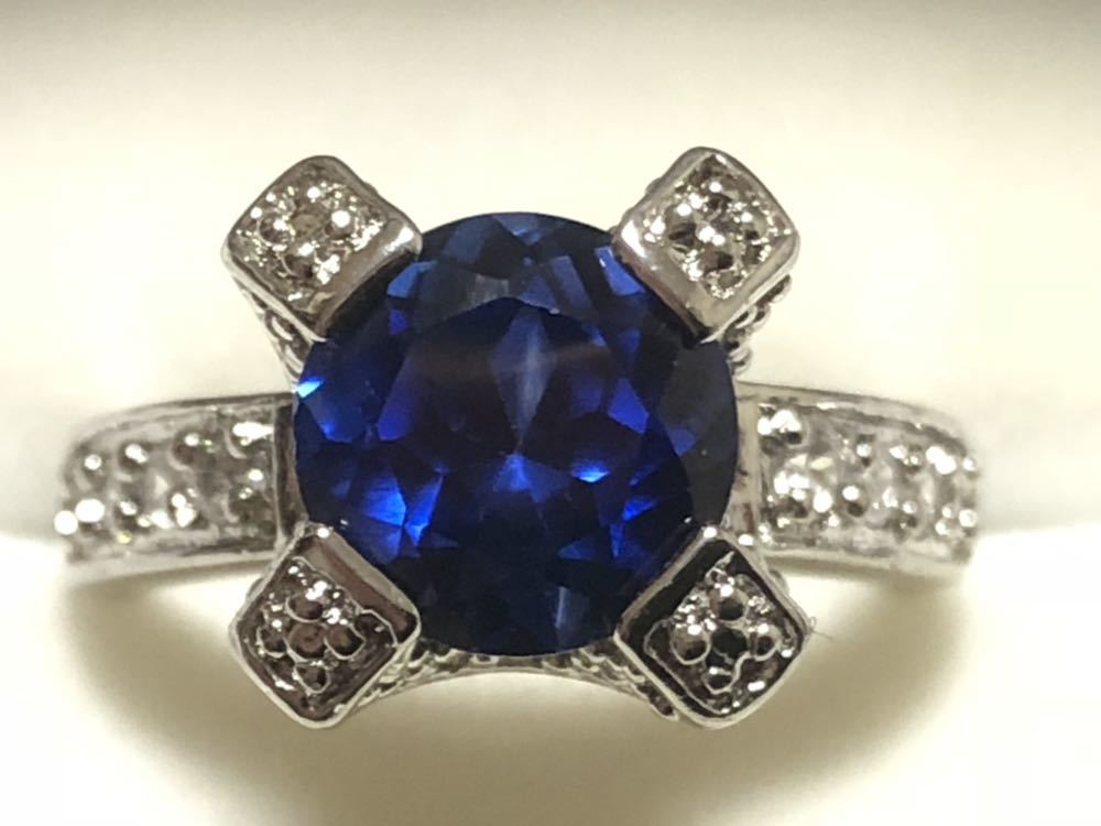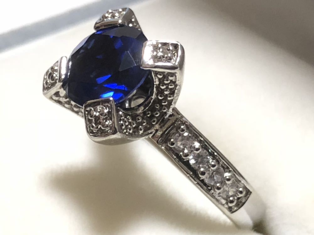 ブルーカラーストーン、ジルコニア、 SILVER925を使用した、ラウンドブリリアントカットのデザインリングです。【CHINA】とアルファベットのRに似たマークがありますが、詳細不明です。925の刻印があります。ブルーカラーストーンは詳細不明です。状態良好です。