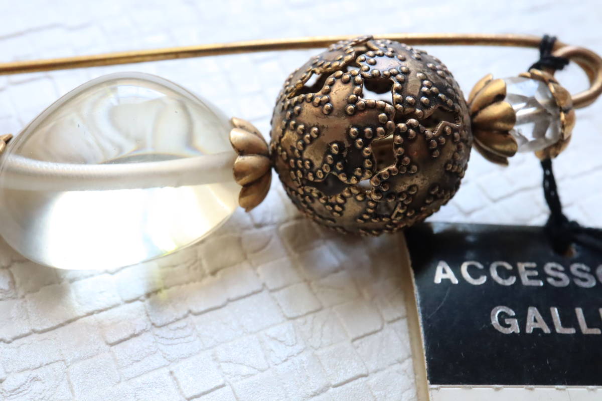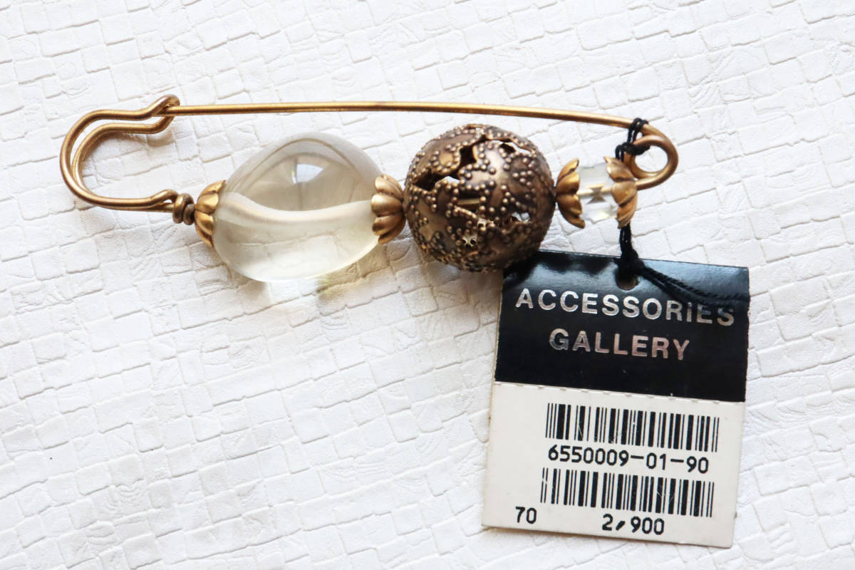 ブローチ ピンで留めるタイプ。 クリアなアクリルビーズと球状。 高さ:長さ8.5㎝×幅2.5㎝ 備考:特になし | |||