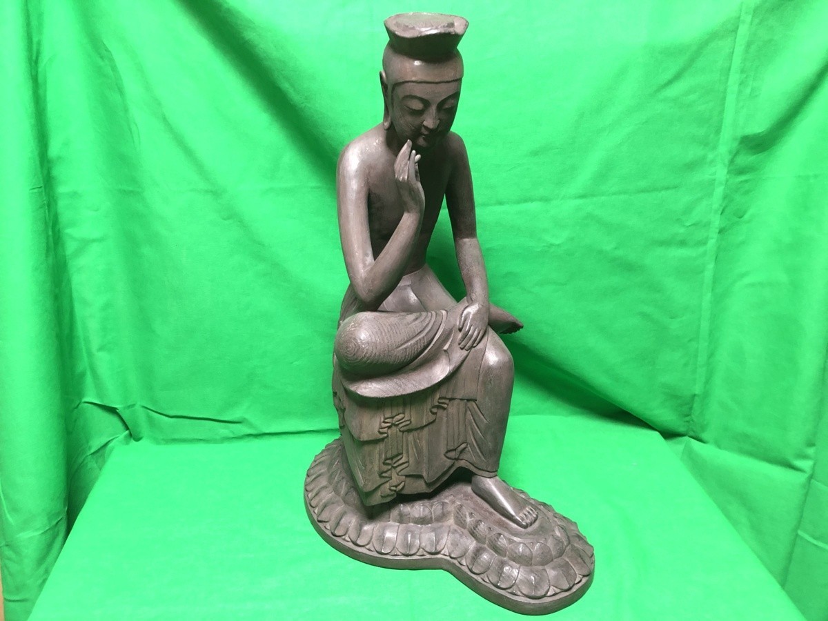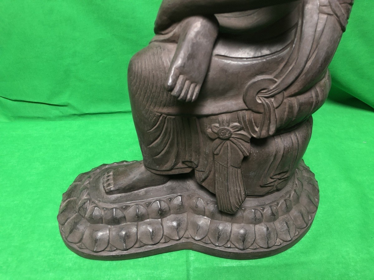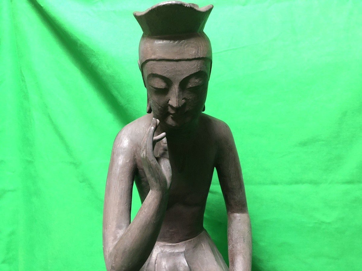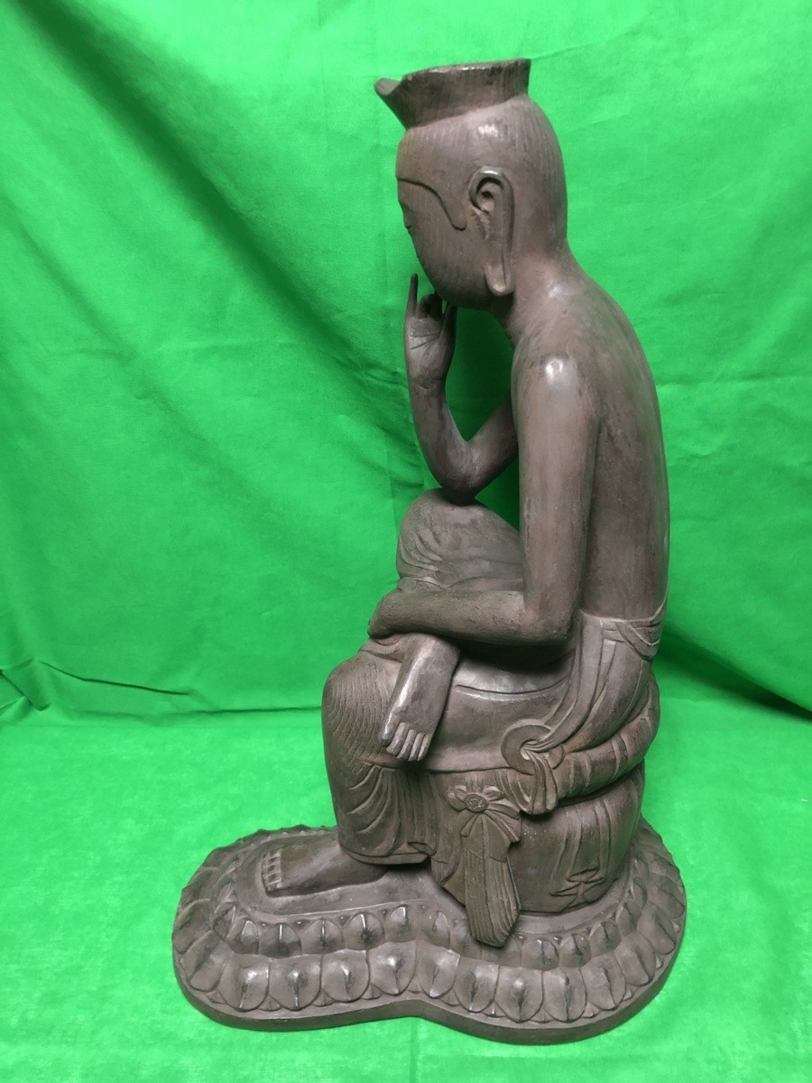 ご覧いただきありがとうございます。 【 商品概要 】 仏像 弥勒菩薩像 みろくぼさつ 樹脂 仏教美術 寺院 仏具 仏閣 屋内保管品 骨董 置物 オブジェ です。 【 商品状態 】 ・屋内保管品です。頂き物なので詳細は不明です。 ・可能な限り、ホコリ、ヨゴレは除去しております。 ・大きな傷や欠損等は見当たりません。 【 サイズ 】 ・高さ:約55cm ・横幅:約27cm ・奥行:約37cm ・重さ:約4.9kg 【 発送について 】 ・『140サイズ』の料金にてお送りいたします。 ※当社ではトラブル防止のため、追跡確認を行える発送方法でご対応をさせて頂いております。 | |||