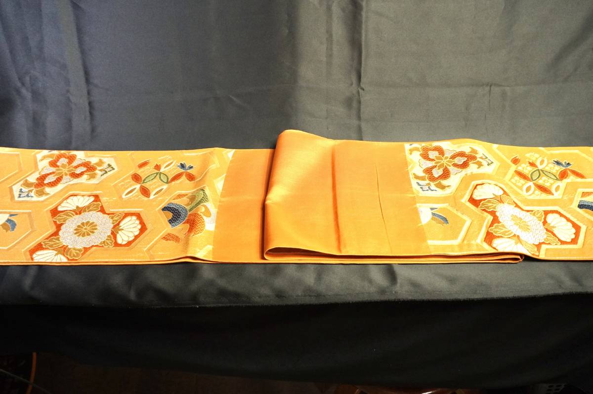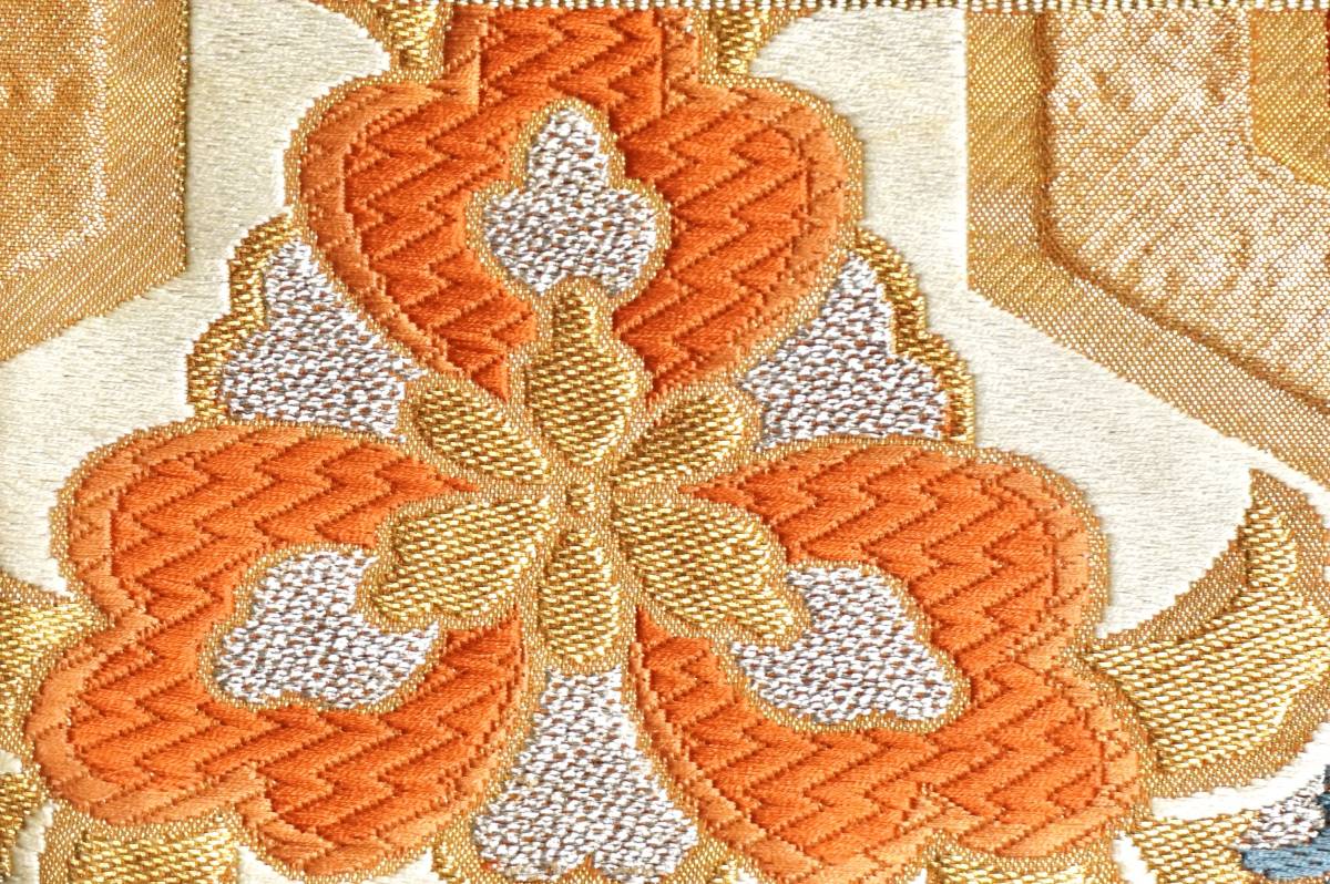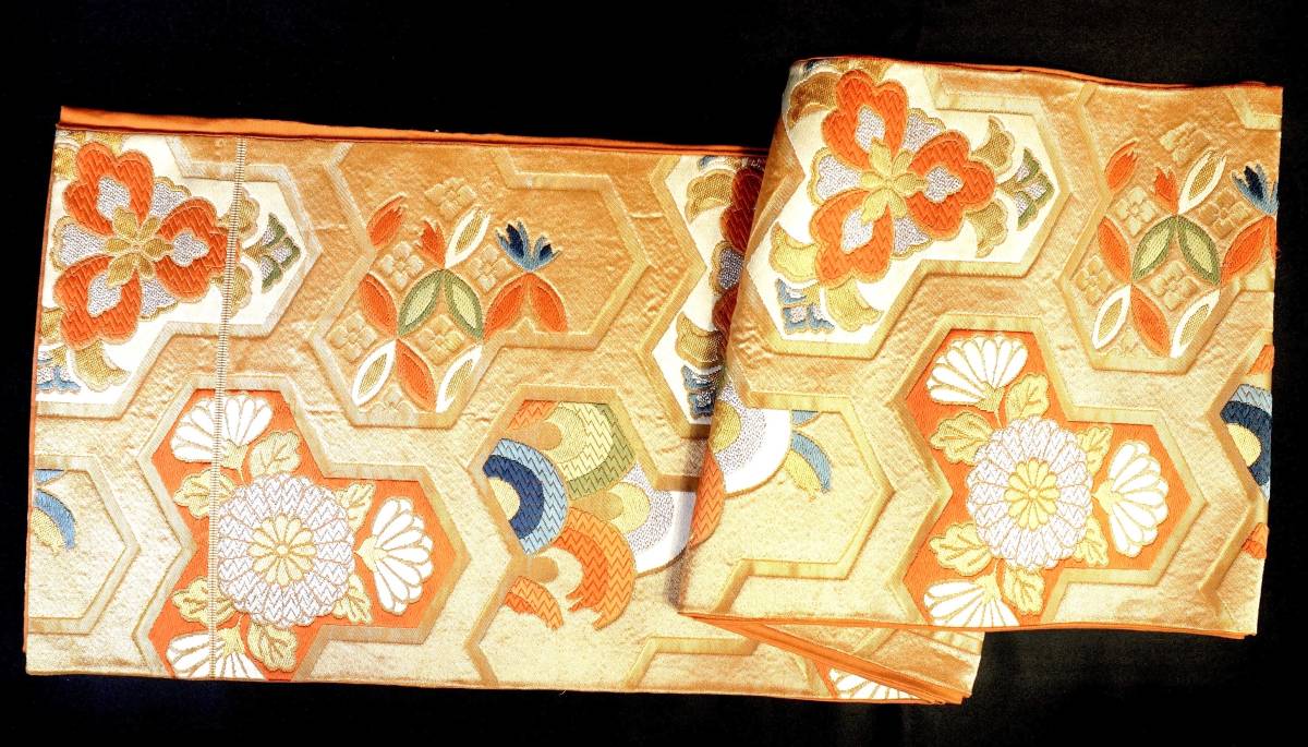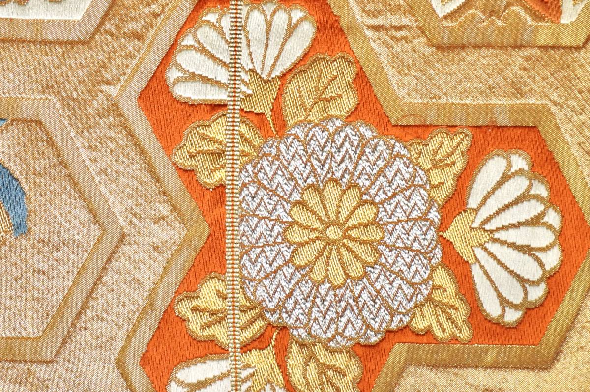 特価 西陣織 袋帯 青海波菊紋 豪華絢爛華やかな帯 和装 着物 桐箱入り