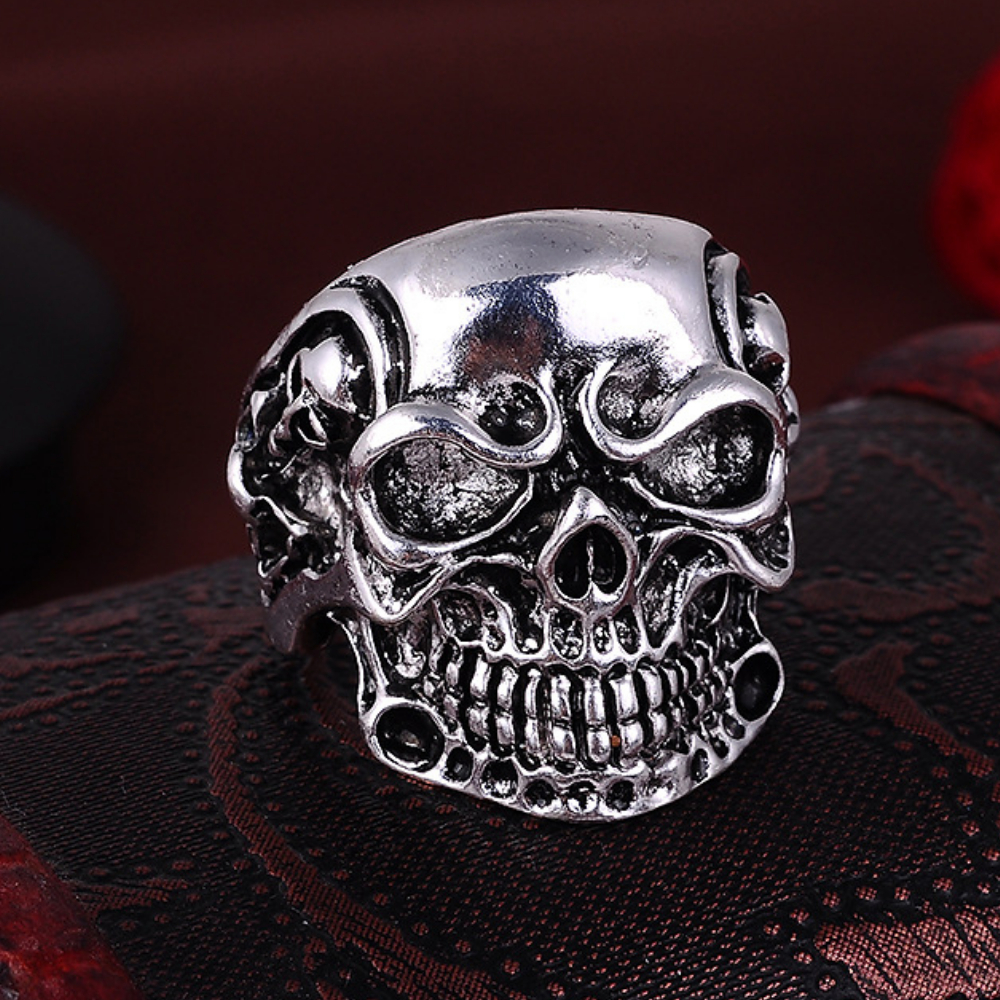 ハードな雰囲気を全体から醸し出す 大きめのスカルフェイスリング。 インパクト抜群の厳つい表情のデザインと 細部まで繊細な作りが同居するリングです。 | |