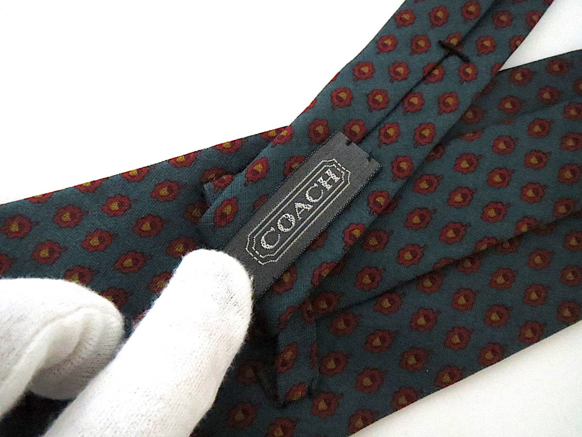 二点落札で送料無料! 2A26 COACH コーチ ネクタイ シルク100% イタリア製 メンズ グリーン グレー系 絹 総柄