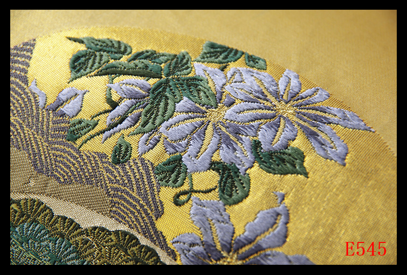 綾織地の上に、さらに多彩な色糸を使い、柄を刺繍のように立体的縫い取りで織り出す技法でした豪華絢爛な織物のことで。錦地の中で最も高級とされる織物です