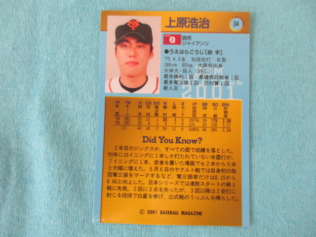★BBM 2001★〔34 上原浩治 読売ジャイアンツ〕サイン(印刷)トレカ♪