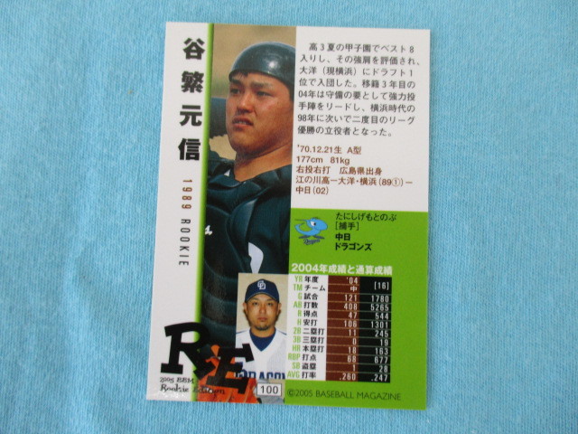 ★BBM 2005★ルーキー エディション〔100 谷繁元信 中日ドラゴンズ〕レギュラーカード トレカ♪