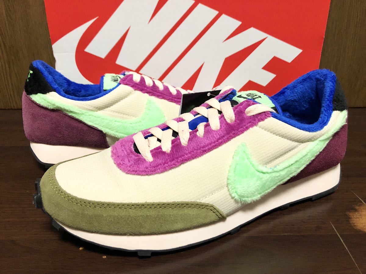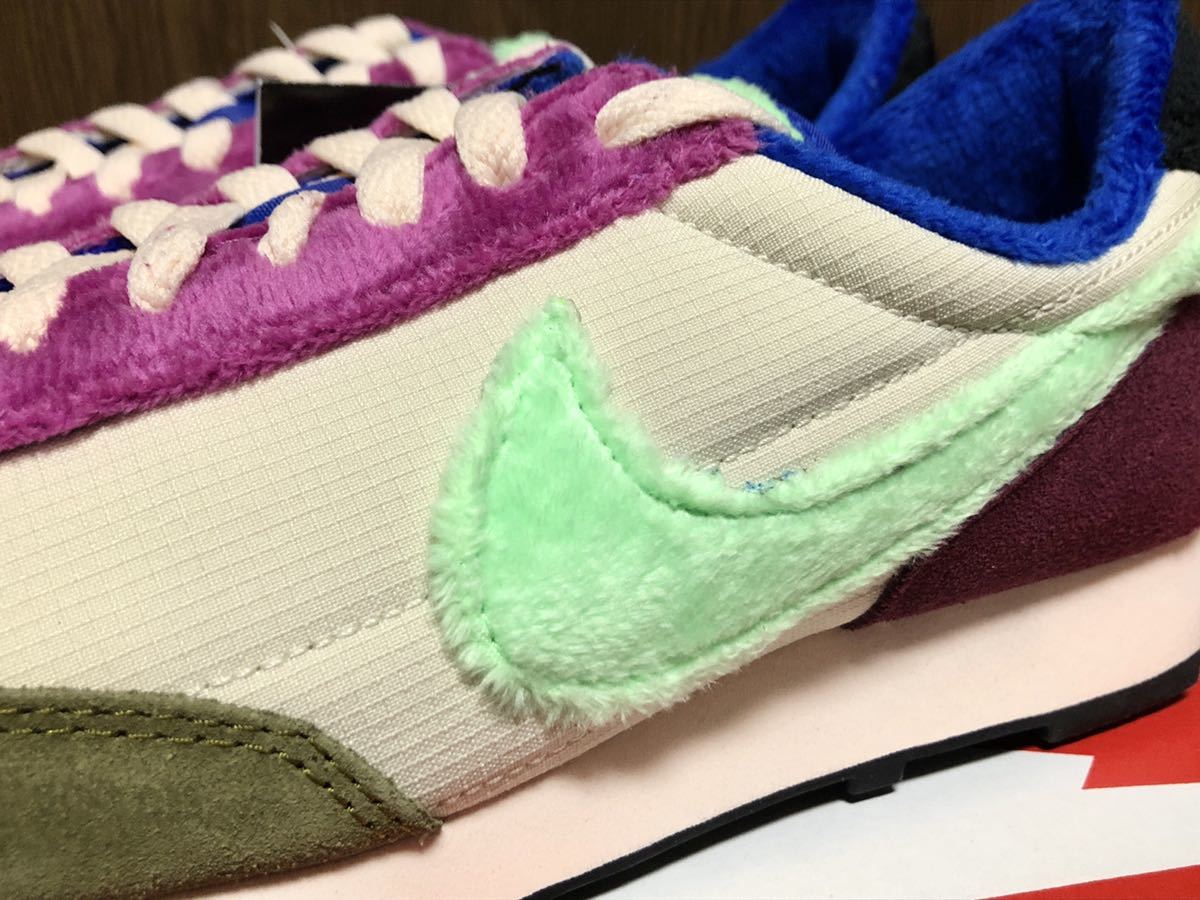アッパーはモスグリーンスエード、ベージュナイロン、パープルフリースボア!