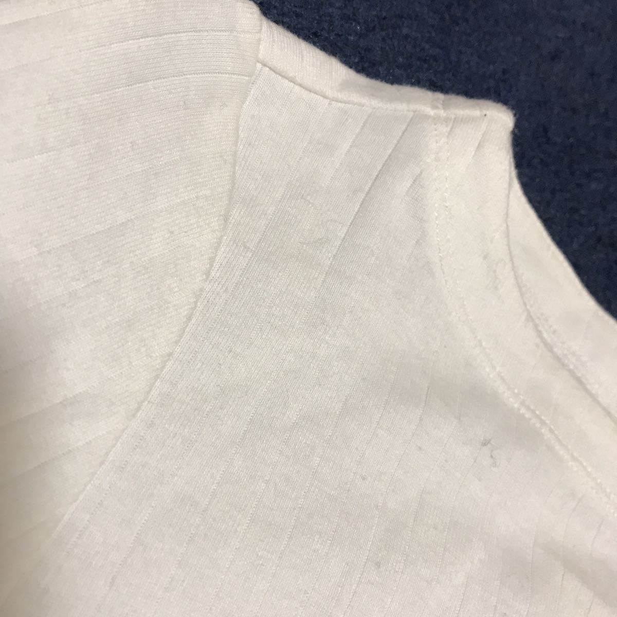 ◆リブっぽい縦ラインがある生地で伸縮性あり♪二の腕隠れる袖丈が嬉しい