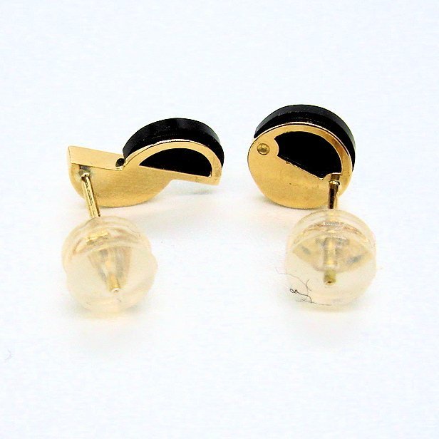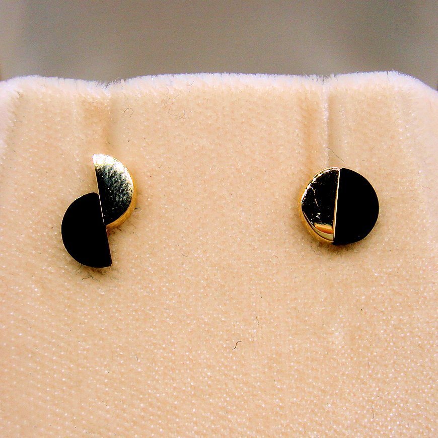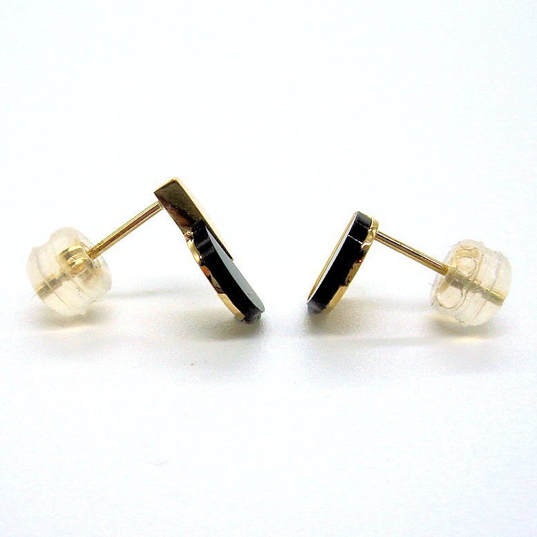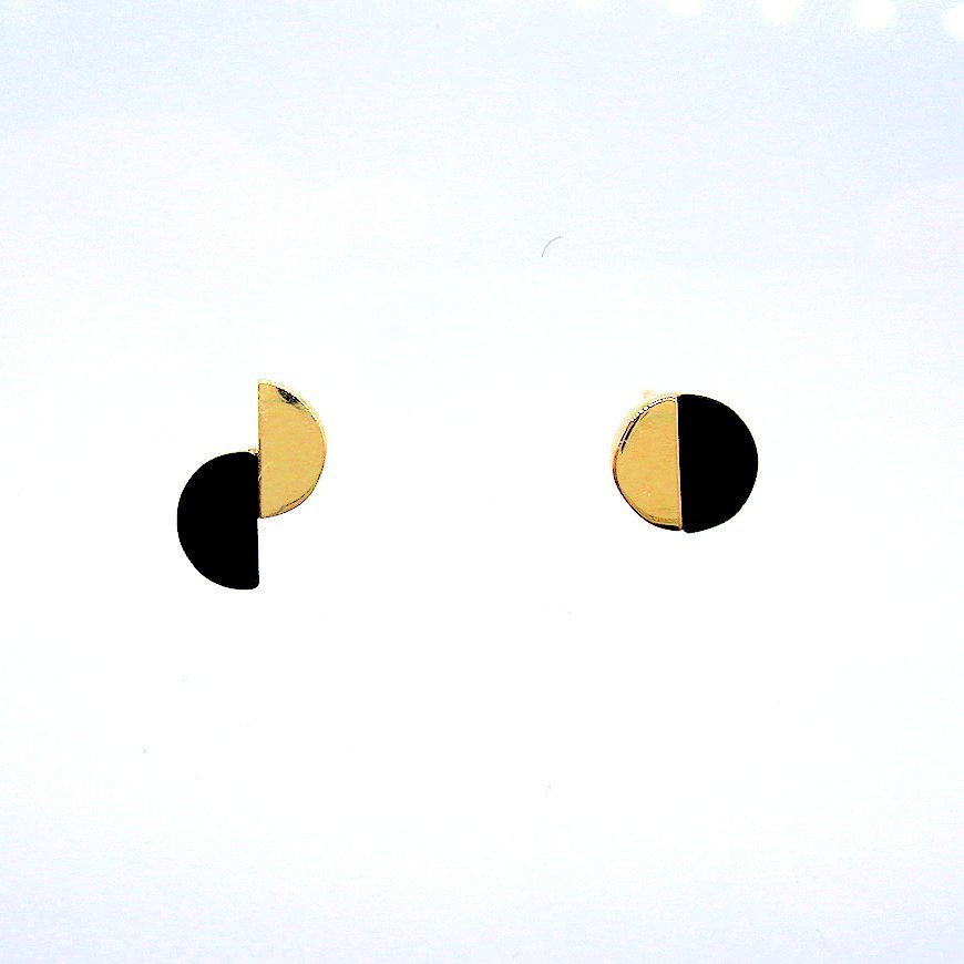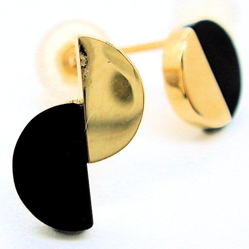 片方は半月状の地金とオニキスが合わさった円盤状のピアス。