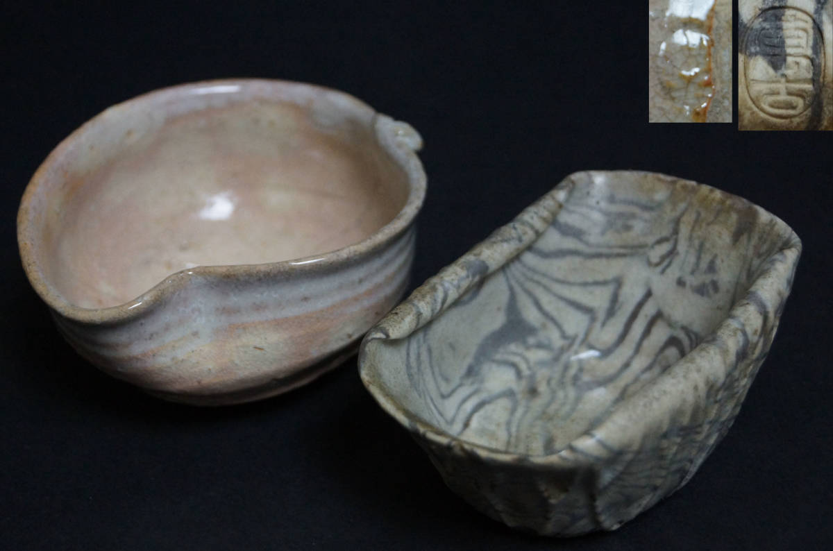 萩焼 細工彫り『葉』在銘,萬古焼 細工彫り『蓮』湯冷まし 二点セット /茶事 茶道具 3C0414 サイズ(約): 長さ9.3㎝、幅8㎝、高さ4.6㎝、重さ100g 長さ10㎝、幅6.2㎝、高さ4.2㎝、重さ89g |