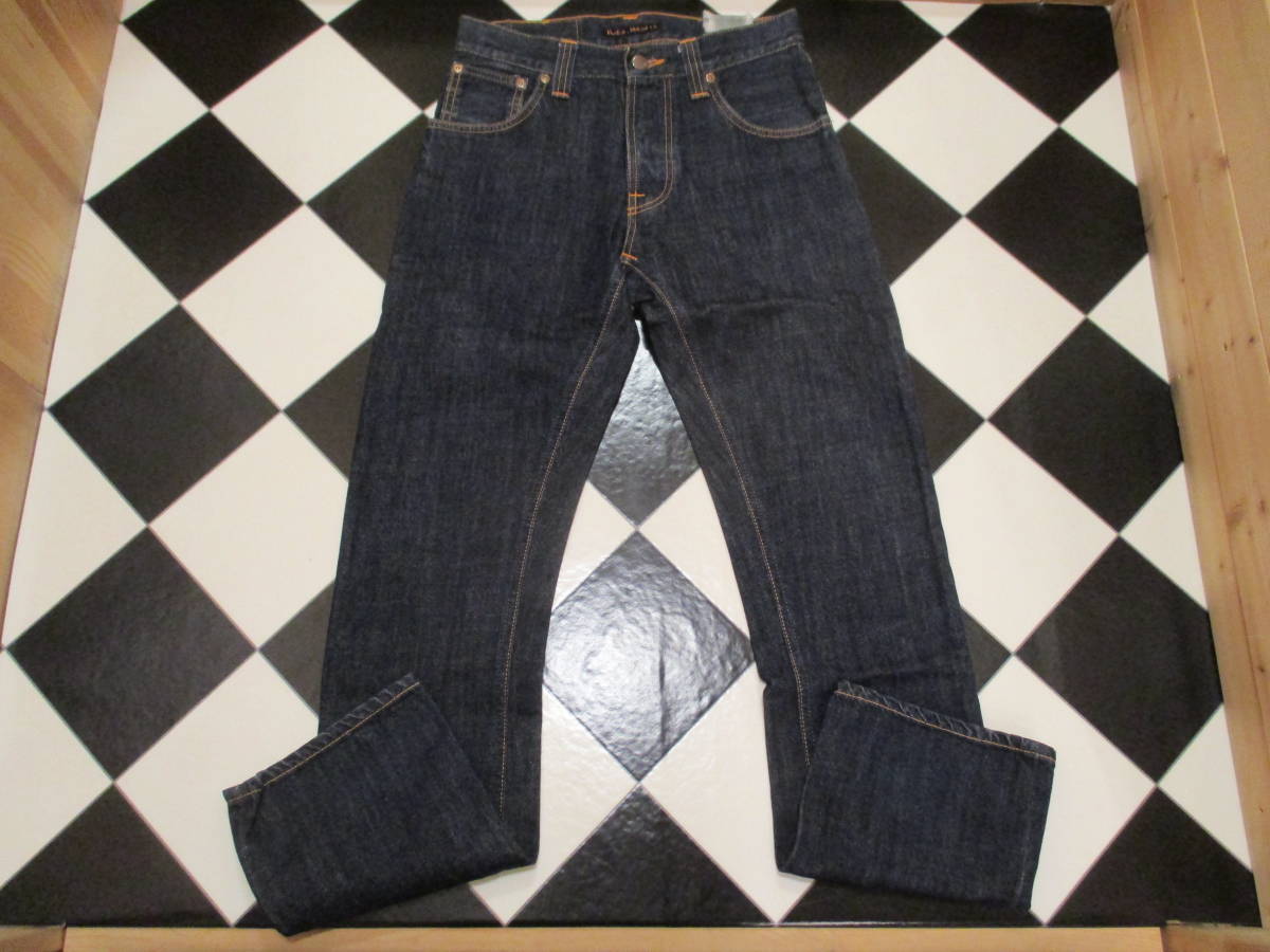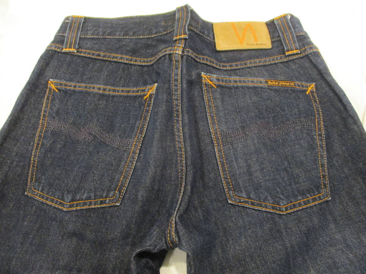こちらは、おそらく、NUDIE JEANS ヌーディージーンズになります。100% ORGANIC COTTON。▽サイズ表記 27x32(平置き実寸ウエスト35cm、股上25cm、股下77cm、裾幅18cm)素人採寸になりますので多少の誤差はご了承下さい。使用感(多少のヨゴレ、小キズ)はありますが、色も濃い目で、これからもまだまだ着用していただけるかと思います。中古になりますのでご理解ある方のみ入札お願いします。神経質な方は入札をお控えください。▽古着の為、ノークレーム、ノーリターンでお願い致します。発送方法は、レターパックプラスのみのお取り扱いとさせていただきます。どうぞよろしくお願いします。
