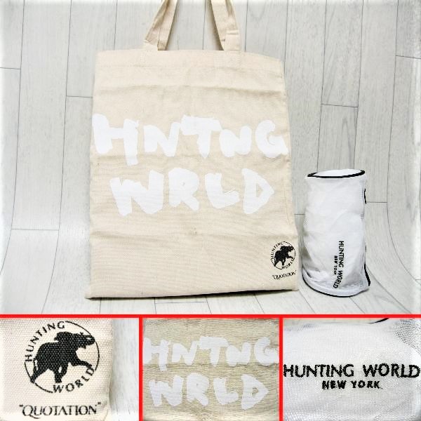★★★極レア!非売品!ビップ顧客限定配布品!入手困難・超希少・超プレミア!ハンティングワールド『刺繍ロゴ入り多目的・マルチ・メッシュポーチ(メッシュケース・折り畳み可能)』&『単品購入不可能!トートバッグ(エコバッグ)セット・新品・展示品・未使用!!!