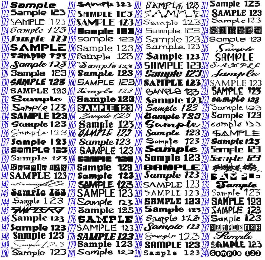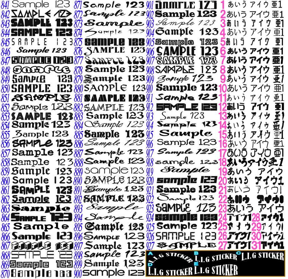 オリジナルで文字を追加したい場合は画像5枚目~10 枚目にあるフォント一覧からお好きなフォントを選んで頂いて作成が出来ます。画像登録枚数の都合上、全てのフォントを載せきれていませんので他のフォント画像は別の出品物の画像内にあります。