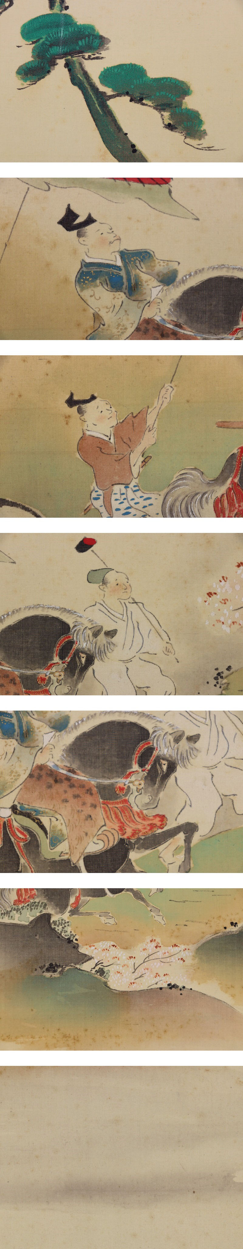 | №2102110【真作】日比野圭文【堂上方観桜図】◆絹本◆合箱◆掛軸 | |
