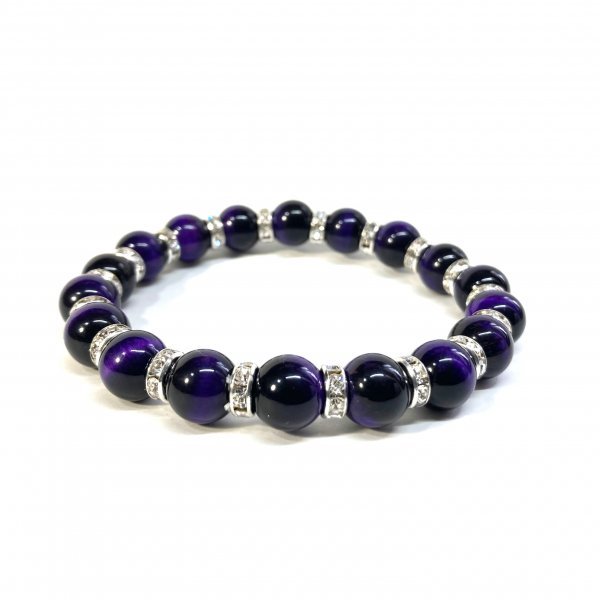 パープルタイガーアイ パワーストーン ブレスレット 10mm 天然石ブレス (シルバー) 数珠ブレス メンズ・レディース 男性 女性 金運 仕事運