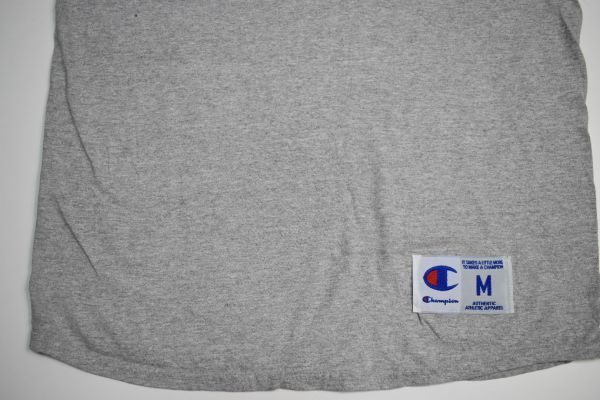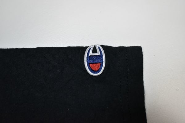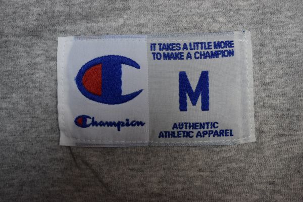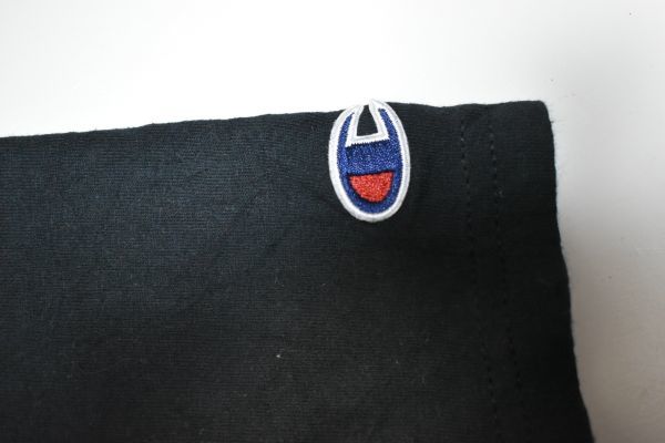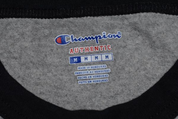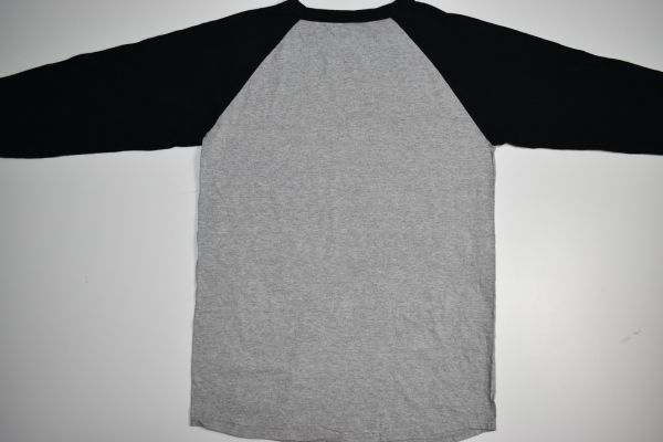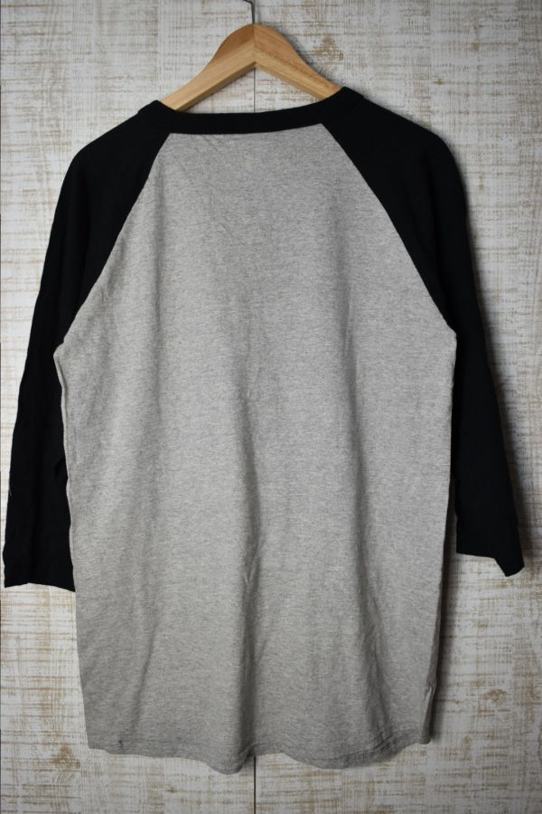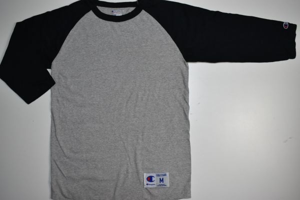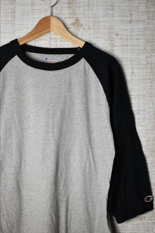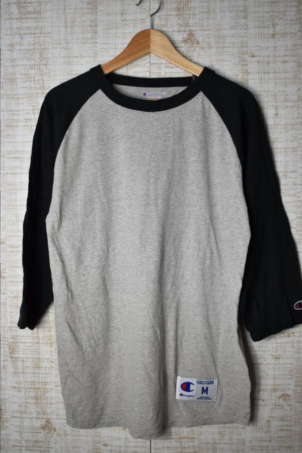 ●US USED Champion チャンピオン 7分丈 ロンT 長袖Tシャツ ロゴ刺繍 ラグランスリーブ 切り替え グレーブラック【M】