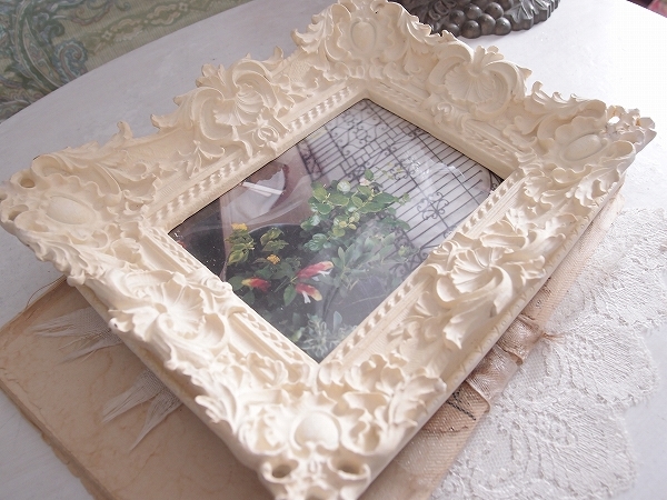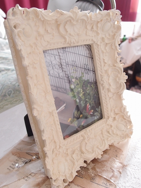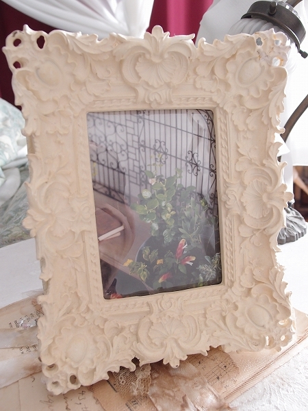 ★フォトフレーム 卓上 アカンサス模様 白 ホワイト アンティーク風