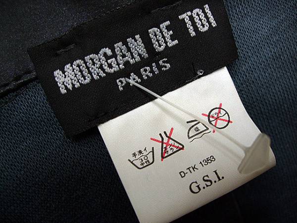 MORGAN DE TOI ジャケットです。色はブルーグレー。シルエットの美しい一着。一枚地ですのですっきり着れます。◆71% POLYVINYL 7% POLYURETHANE 22% COTTON◆サイズは不明で着丈約75cm・肩幅約42cm・袖丈約62cm・身幅約44cmです。◆USEDですが状態は良好です。◆