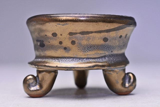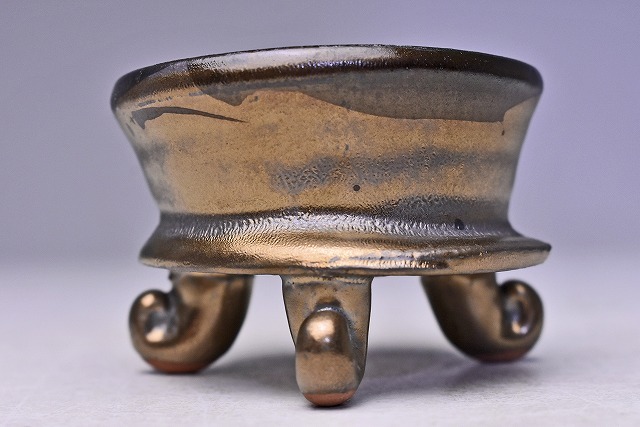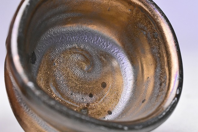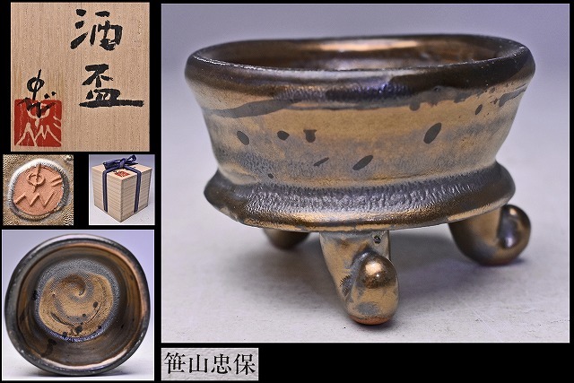 笹山忠保 ★ ぐい呑 ★ 共箱 栞 ★ 金彩 三足 酒盃 ★ 造形が独創的で金彩が神々しい景色の良い逸品 ★ 酒器 ★ アート ★