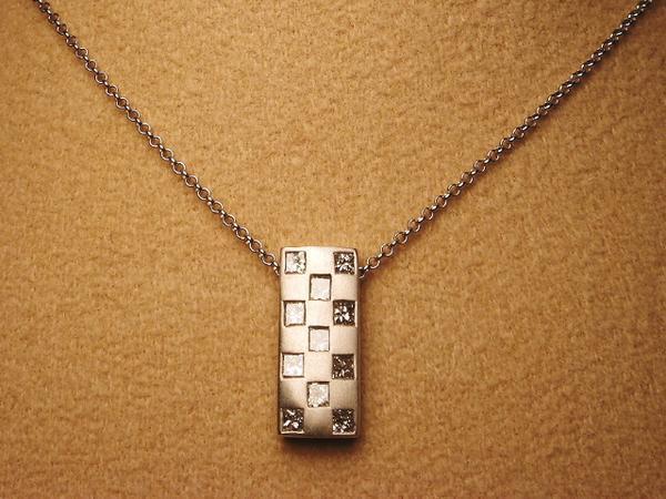 つや消し仕上げのプラチナ枠に浮び上がる角ダイヤモンドがリッチに美しく輝くダイヤペンダント♪