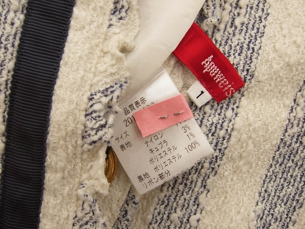 U極美品☆アプワイザーリッシェ*Apuweiser-riche★オフ白*濃紺系★ラメ糸★リボン付き★ボーダー柄スカート★サイズ1号