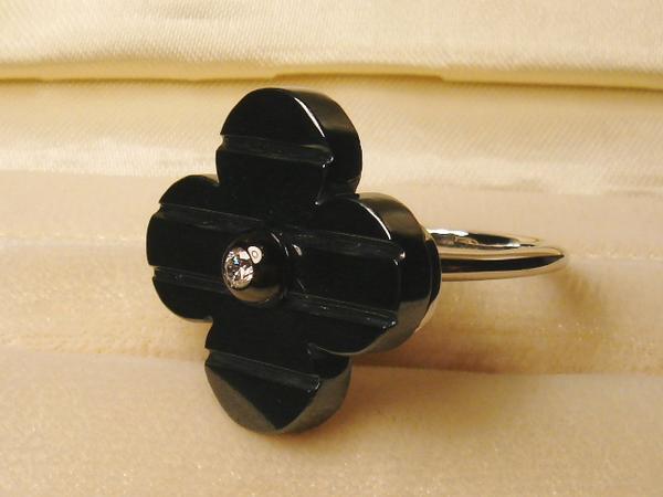 アクセントの大粒ダイヤも枠は黒メッキ仕上げになっています。