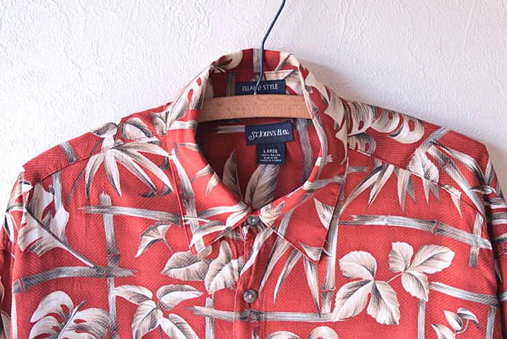 【送料無料】セントジョンズベイ ヴィンテージ ハワイアンシャツ アロハシャツ レーヨン素材 メンズL 総柄 ST.JOHN'S BAY CB0051