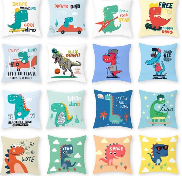 | 可愛い恐竜クッションカバーです。 21種類のデザインがあります。 こちらはデザインNo1です。 ユーモラスで可愛い柄は子供にも大人にも人気です。 ソファや学習机の椅子背もたれなどご自由にお使いください。 柔らかくて肌触りの良い生地でお昼寝用にも使えます。 | ||||||||||