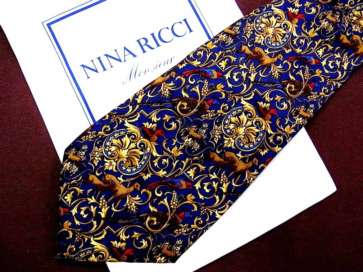 0^o^0ocl♪rb2530美品【シカ・カモ・装飾・レリーフ】ニナリッチ ネクタイ