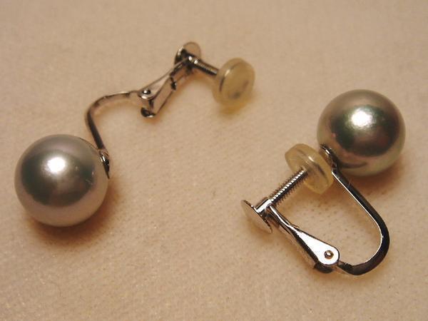 プラチナ枠使用のあこやシルバーカラーパールイヤリング♪