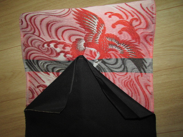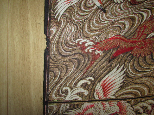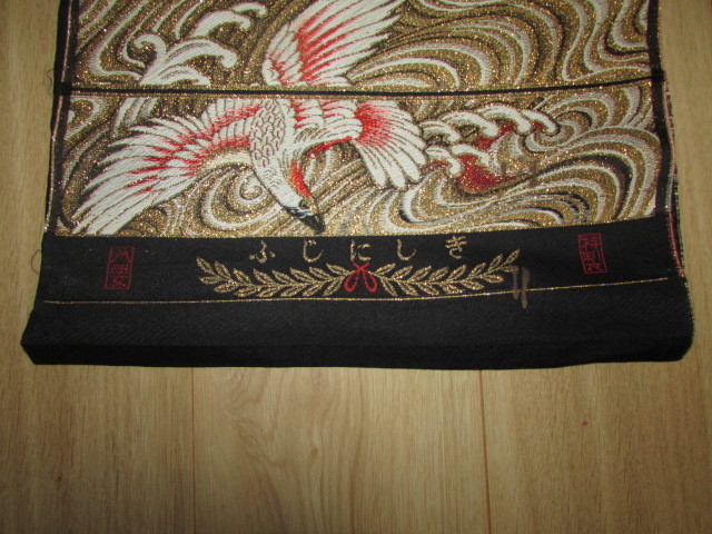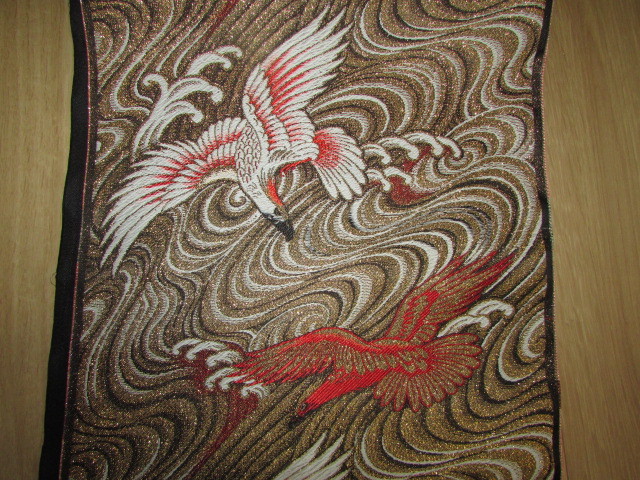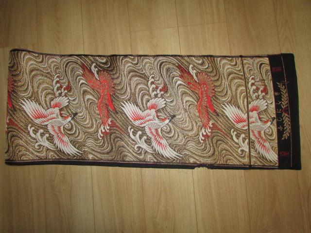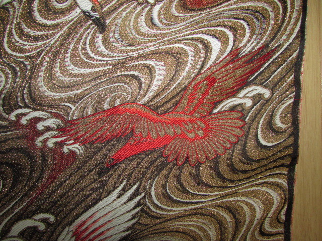 (着物屋・蔵出・古布・ふじにしき・荒波に鷹模様織り出し未使用名古屋帯地反物)