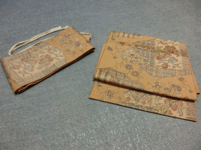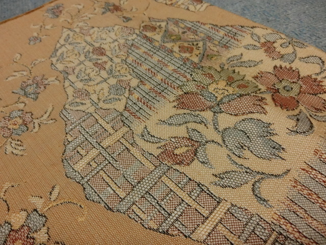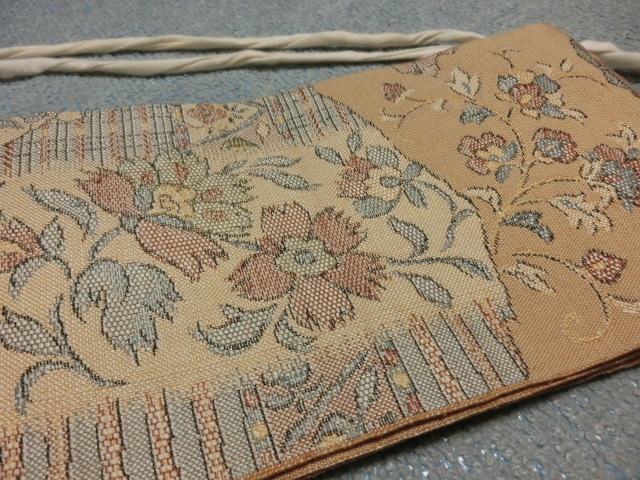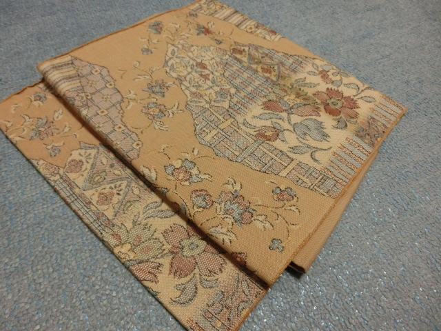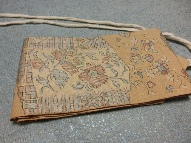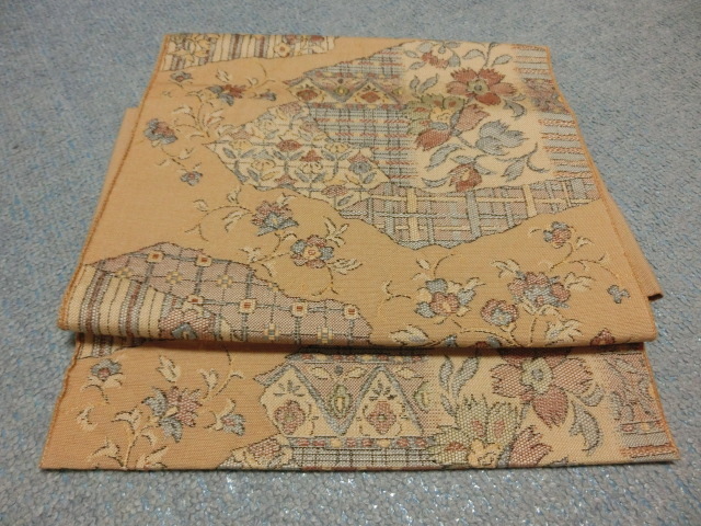 | 【古着 リサイクル】九寸帯 名古屋帯 黄色 唐花柄 女性用 帯 嵯峨0613-21 | |