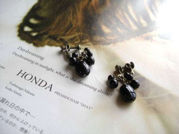 パンク・ガール・・シリーズです♪夜会への招待・・シックなオニキスのイヤリングです♪漆黒の丸玉やオーバルのオニキスを合 わせてアンティークな表情です♪4ミリ、6ミリの丸玉、8×10ミリのオーバルのオニキスが重厚な雰囲気です ♪長さは全長3センチ位です♪ピアスにも変更出来ます♪お揃いのネックレスやブレスレットも出品しています♪シンプルで飽きの こないいつまでも着けられるデザインを考えて作りま した♪ハンドメイドをご理解頂いてノーク レーム、ノーリターンでお願いします