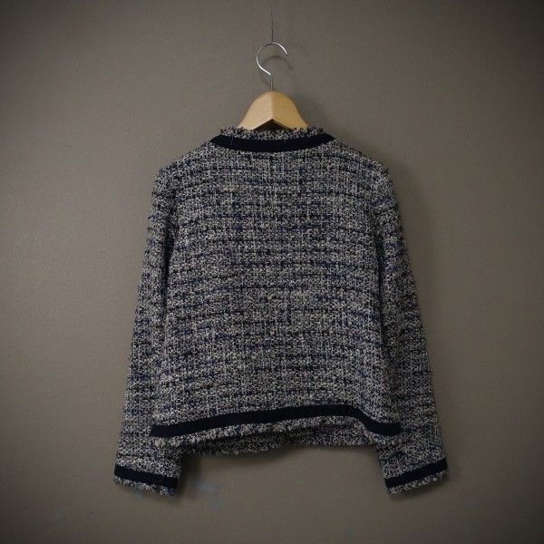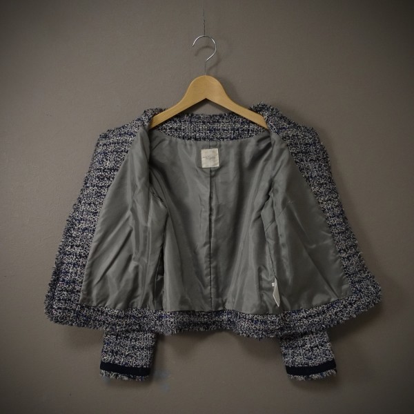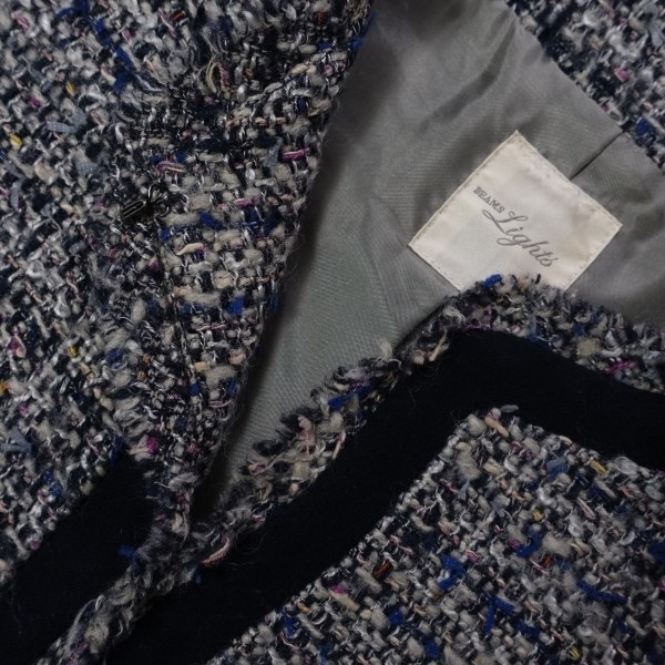 ご覧いただきありがとうございます。 気持ちのよいお取引となるよう心がけておりますので どうぞご安心ください。 BEAMS LIGHTS/ビームス ライツのノーカラーツイードジャケットです。 お色はネイビー系です。 ラグジュアリーな雰囲気を醸しつつも、“大人のかわいらしさ”を提案された 他のブランドとは一線を画したデザインが光る逸品です。 上質なツイード生地を使用したジャケットは、普段使いはもちろん、 入学式・卒業式などセレモニーやパーティースタイルにも最適です。 是非、お手に取ってお確かめください。 サイズ表記は 36(レディースSサイズ相当)です。 実寸も合わせてご参考ください。 ■着丈:46 cm ■身幅:44 cm ■肩幅:36 cm ■袖丈:55 cm (すべて平置き採寸です。多少の誤差はご了承下さい。) 中古品のためそれなりの使用感はございますが、まだまだお使いいただけるかと思います。 16463 |