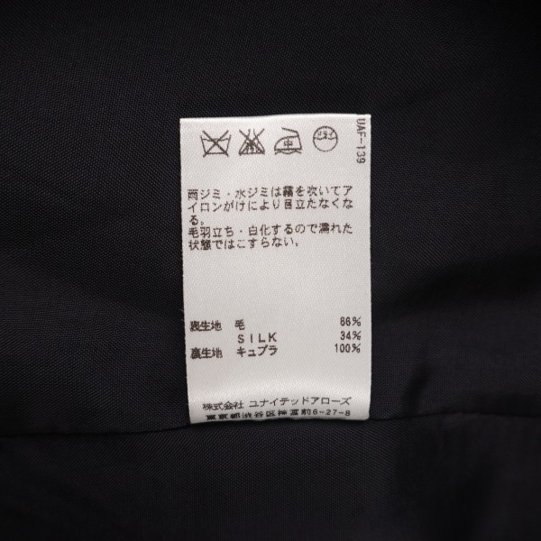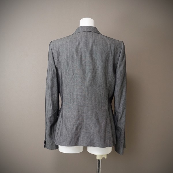 ご覧いただきありがとうございます。 気持ちのよいお取引となるよう心がけておりますので どうぞご安心ください。 UNITED ARROWS/ユナイテッドアローズの日本製シルク混ウールテーラードジャケットです。 お色はグレーです。 メンズライクな印象のピークドラペルのテーラードジャケットです。 ウエストの絞りはやや緩やかな、全体的にすっきりとしたシルエットに仕上がっています。 シンプルにパンツにもスカートにも合わせやすく、様々なシーンで活躍してくれること間違いなしです。 良質な素材感と洗練されたデザインが際立つ逸品。 是非、お手に取ってお確かめください。 サイズ表記は 42(レディースXLサイズ相当)です。 実寸も合わせてご参考ください。 ■着丈:61.0 cm ■身幅:46.0 cm ■肩幅:39.0 cm ■袖丈:61.0 cm (すべて平置き採寸です。多少の誤差はご了承下さい。) 写真の通り、使用感はほとんどなく綺麗な状態ですので、 気持ちよくお使いいただけるかと思います。 18453 |