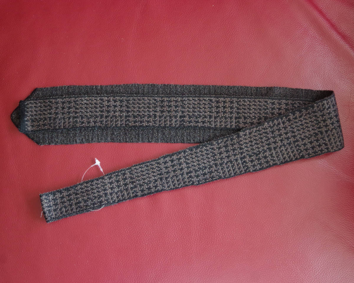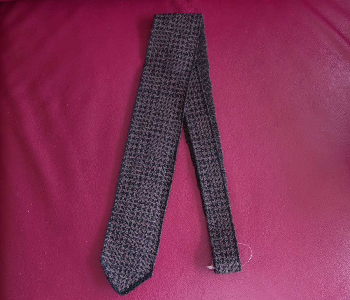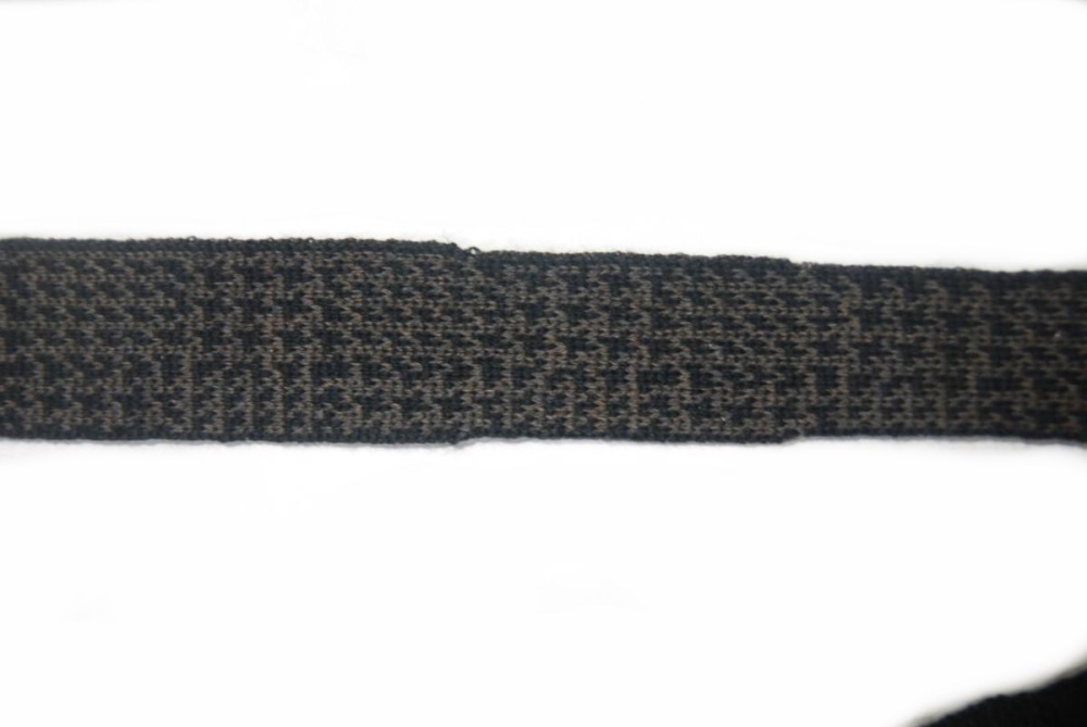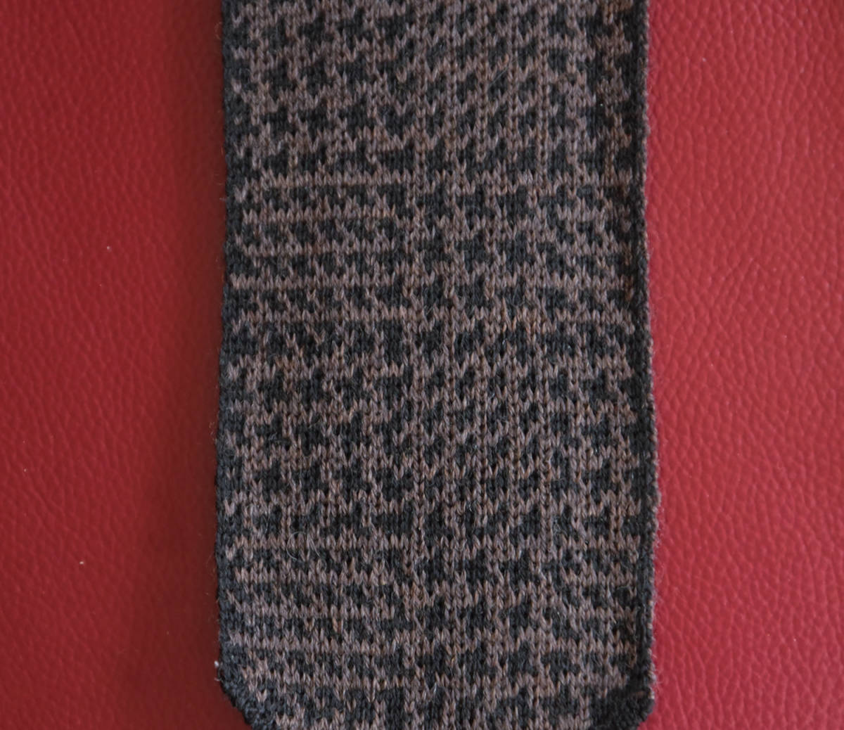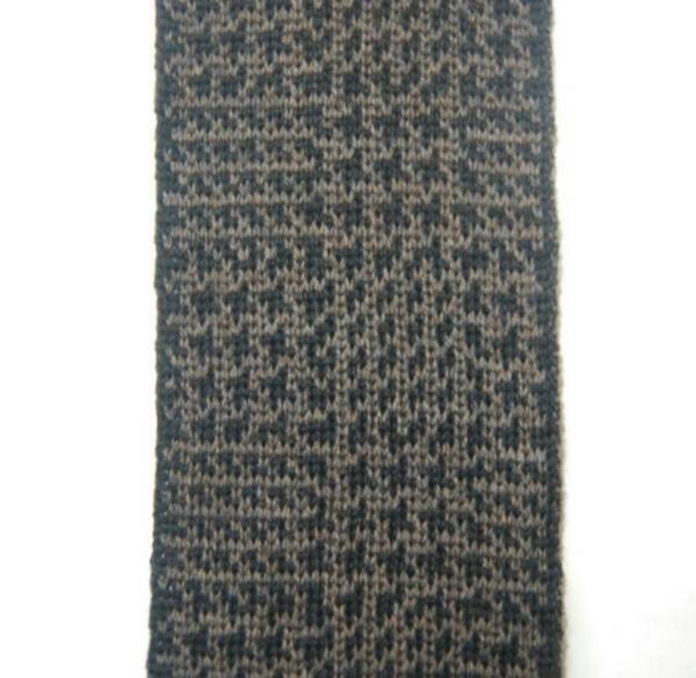 ダークブラウンと黒の羊毛糸を、ジャカード製法によって綺麗に織り込んで仕上げた生地を使用。